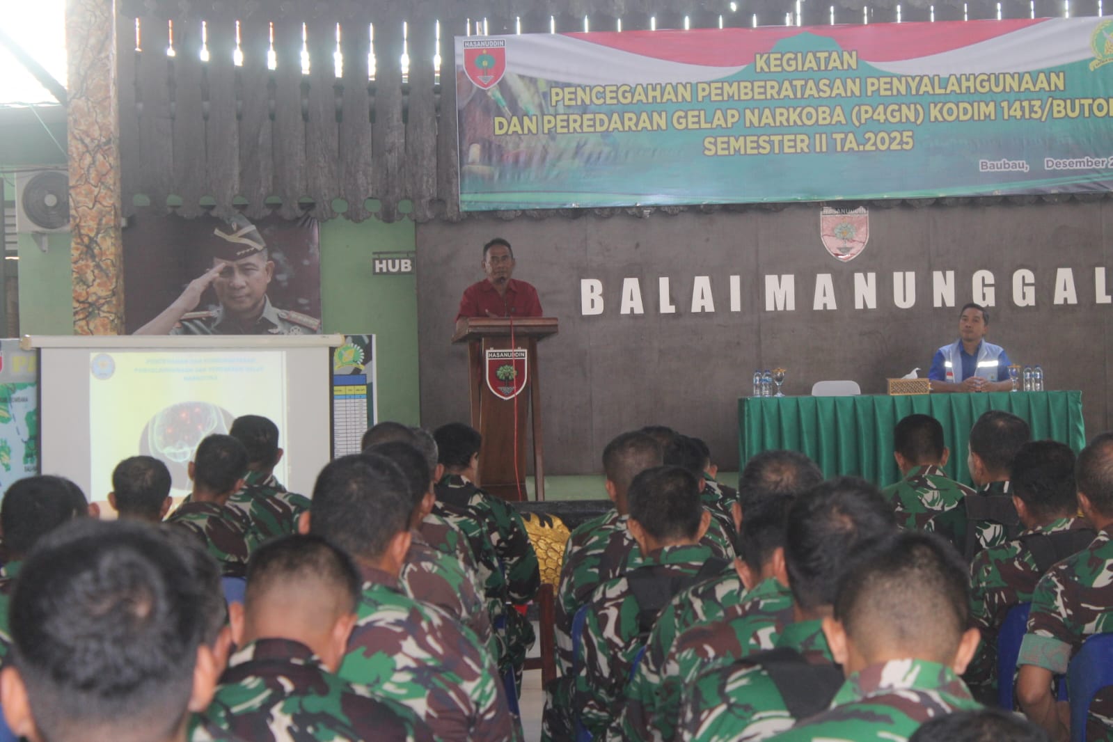 Komandan Kodim 1413/Buton yang di wakili Pasi Intel, Kapten Inf Arifin, menegaskan bahwa narkoba adalah ancaman serius bagi generasi bangsa dan stabilitas nasional, sehingga sinergi TNI-BNN sangat penting. “Melalui kegiatan P4GN ini, kami berharap seluruh prajurit memahami bahaya narkoba dan berkomitmen menolak penyalahgunaannya,” ujarnya.