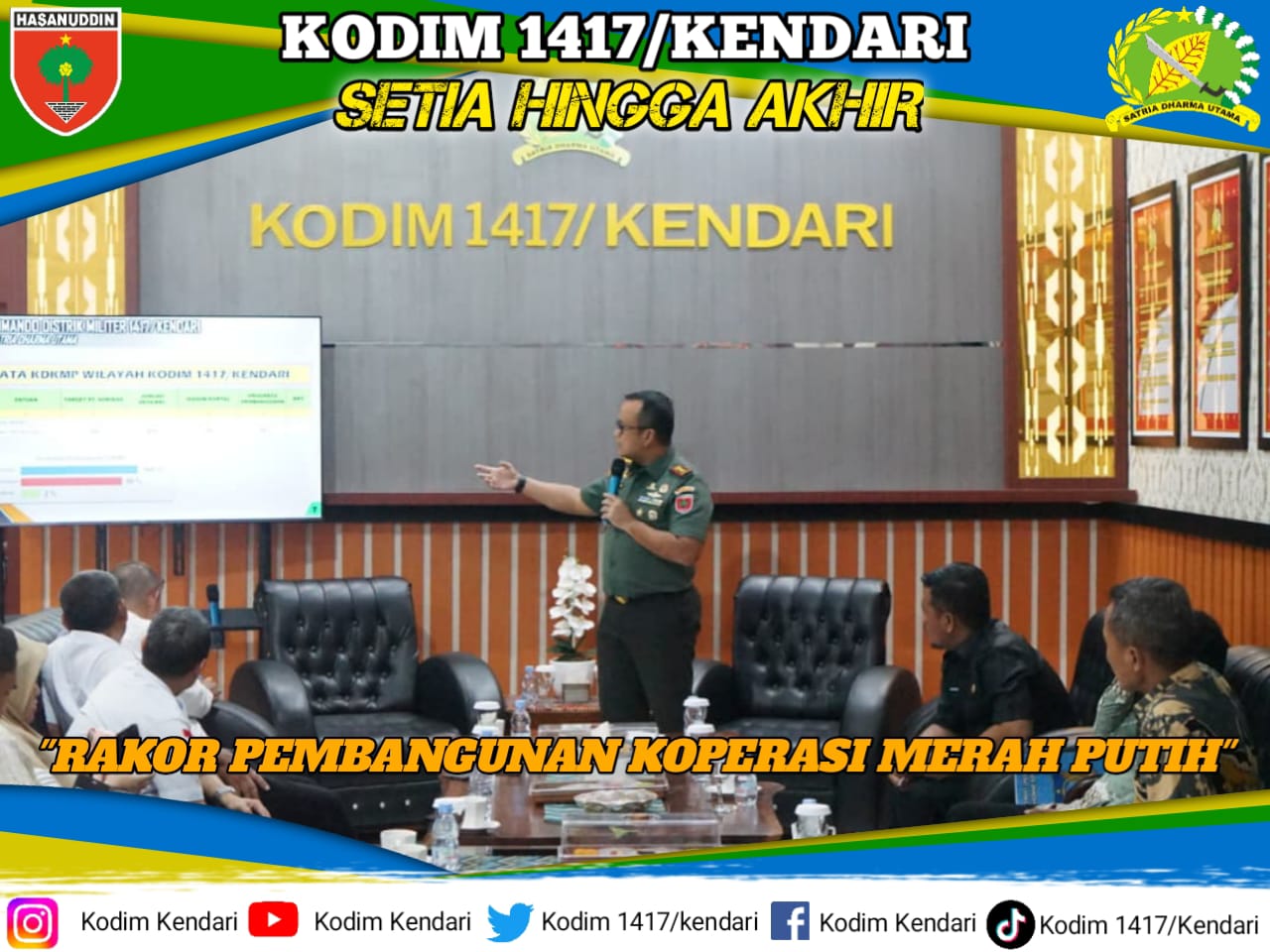Rapat koordinasi tersebut bertujuan untuk memperkuat sinergi dan kolaborasi antara Kodim 1417/Kdi dengan Pemda setempat guna percepatan pembangunan gerai fisik Koperasi Desa Merah Putih di Kota Kendari, Kab. konawe, Kab Konawe Selatan dan Kab Konawe Kepulauan.