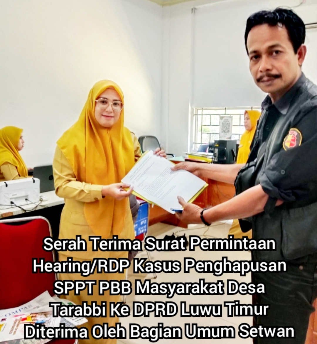 Dengan didampingi Tim Media, Nasir selaku Koordinator dari beberapa Kelompok tani di Desa Tarabbi terpaksa melayangkan surat permintaan Hearing atau Rapat Dengar Pendapat (RDP) ke DPRD Lutim, Senin 13/10-2025.