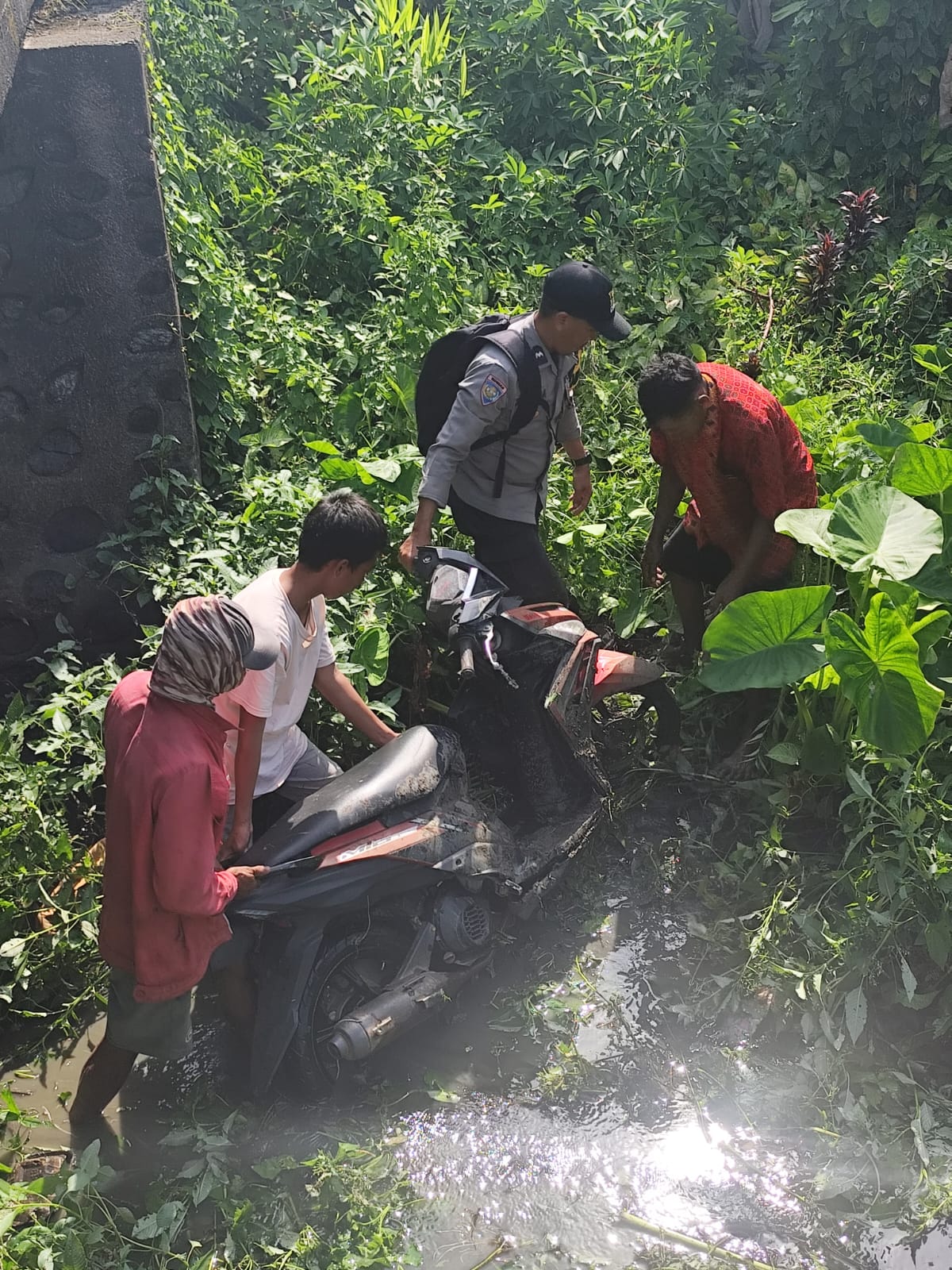 Korban kemudian berteriak minta tolong hingga warga dan polisi memberikan pertolongan. Setelah dievakuasi kemudian dibawa ke puskesmas, karena perlu perawatan lanjutan kemudian dirujuk ke rumah sakit.