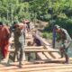 Dengan peralatan sederhana, warga dan anggota Satgas bahu-membahu mengangkat batu dari sungai serta menyiapkan papan untuk keperluan pembangunan. Kebersamaan tersebut menjadi bukti nyata semangat kemanunggalan antara TNI dan rakyat dalam membangun desa.