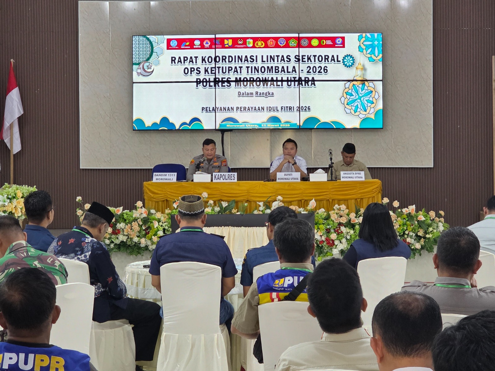 Morowali Utara,fokustime.id – Kepolisian Resor Morowali Utara menggelar rapat koordinasi (rakor) lintas sektoral dalam rangka menghadapi Operasi Ketupat Tinombala-2026. Sebanyak 221 personel gabungqn diturunkan untuk mengawal masyarakat yang akan melaksanakan mudik Lebaran 2026 di wilayah Kabupaten Morowali Utara. Rabu (11/3/2026)