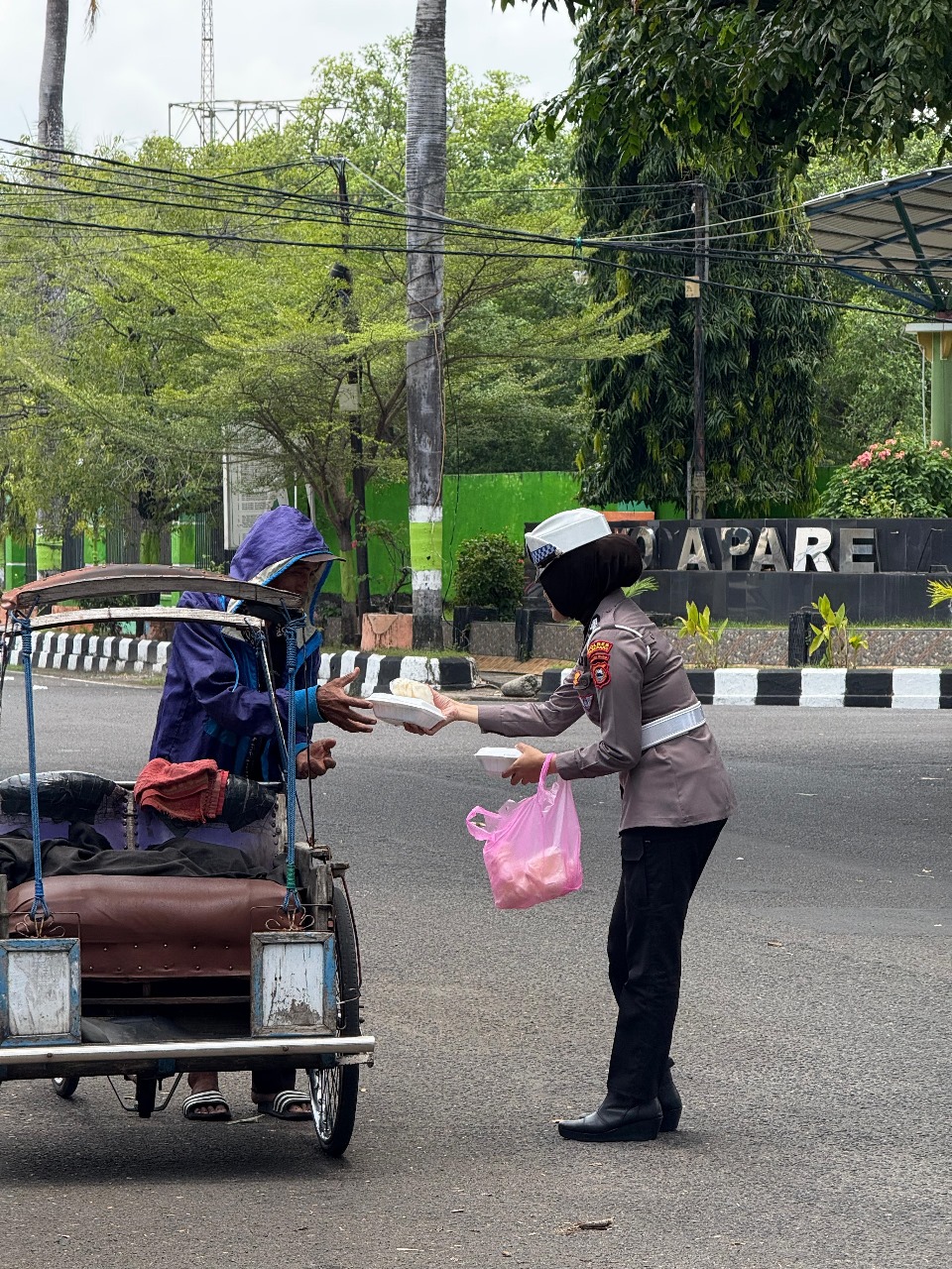 Dengan ramah, para Polwan menyapa dan menyerahkan bungkusan makanan, disertai pesan-pesan keselamatan berlalu lintas yang disampaikan dengan cara humanis. Aksi sederhana namun penuh makna ini disambut hangat dan penuh rasa syukur oleh para penerima.