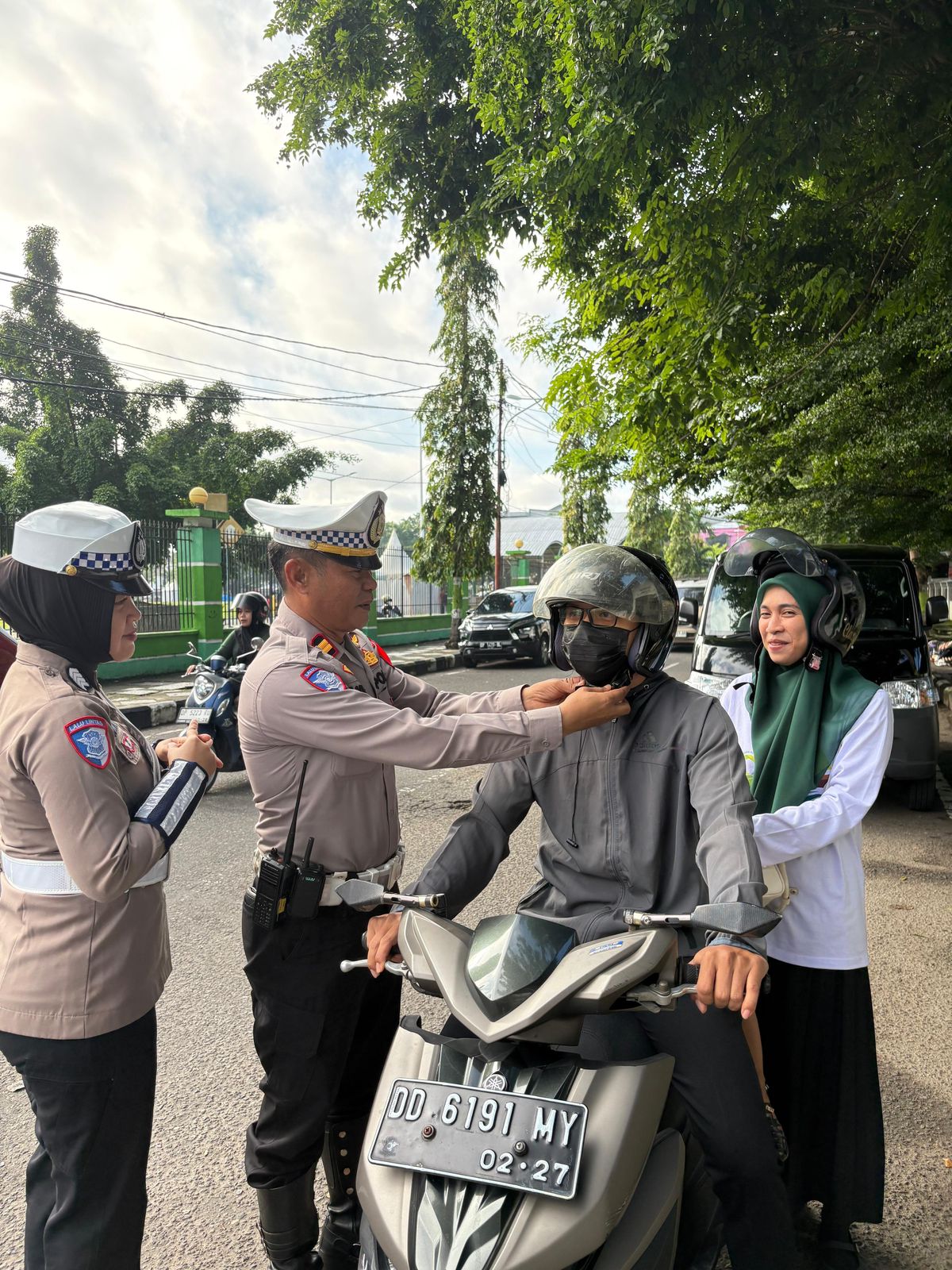 Sebagai pengemban Satgas Kamseltibcarlantas, personel Sat Lantas Polres Parepare melaksanakan kegiatan edukasi pentingnya penggunaan helm pelindung kepala kepada pengendara roda dua. Kegiatan tersebut bertujuan meningkatkan kesadaran dan keselamatan pengguna jalan.