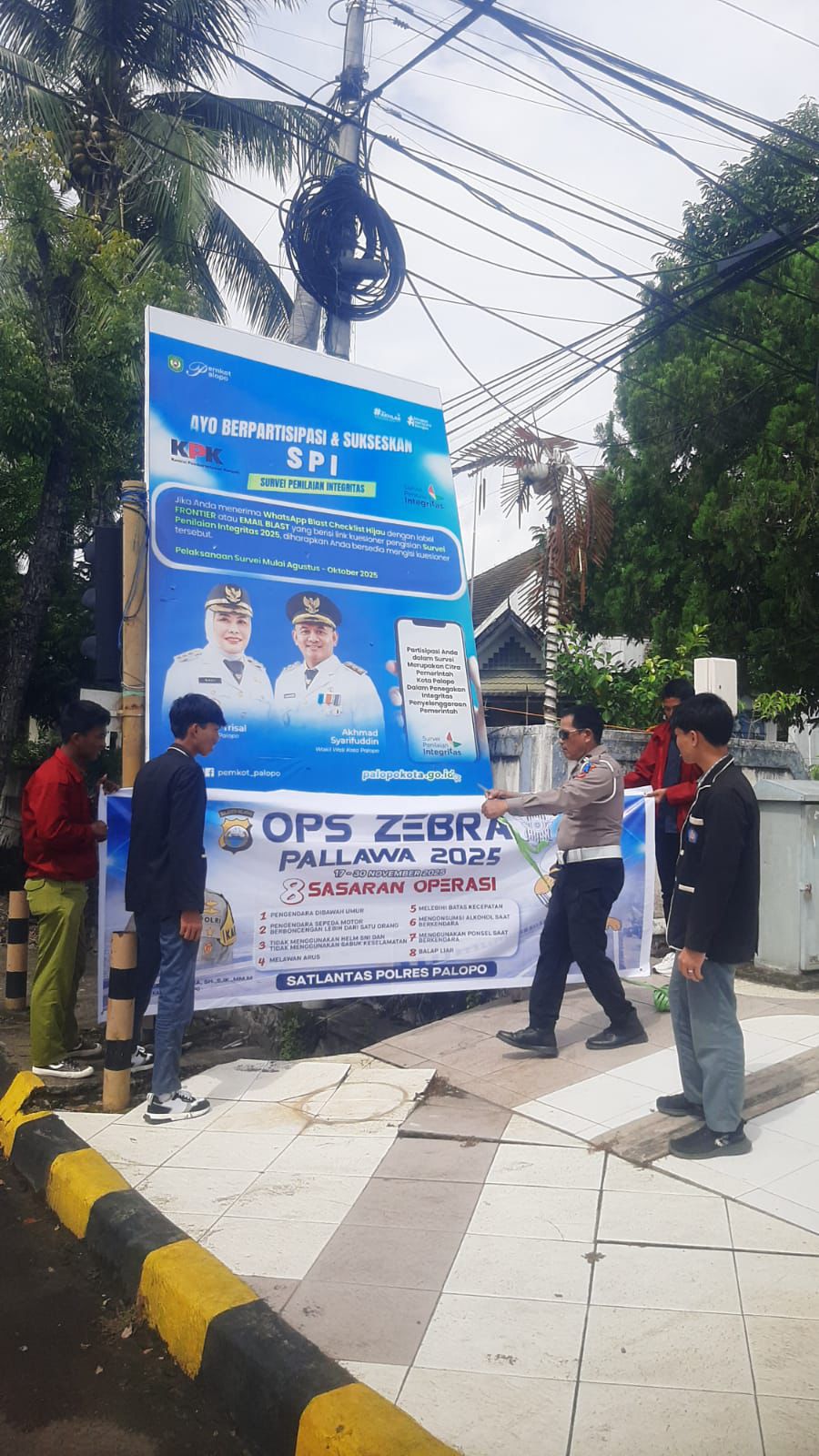 Pada Selasa, 26 November 2025, Kanit Kamsel Polres Palopo Aiptu Yulius Sappa melaksanakan pemasangan spanduk imbauan tertib berlalu lintas di kawasan rawan pelanggaran dan kecelakaan, tepatnya di perempatan lampu merah BNI, Jalan Andi Djemma, Kota Palopo.