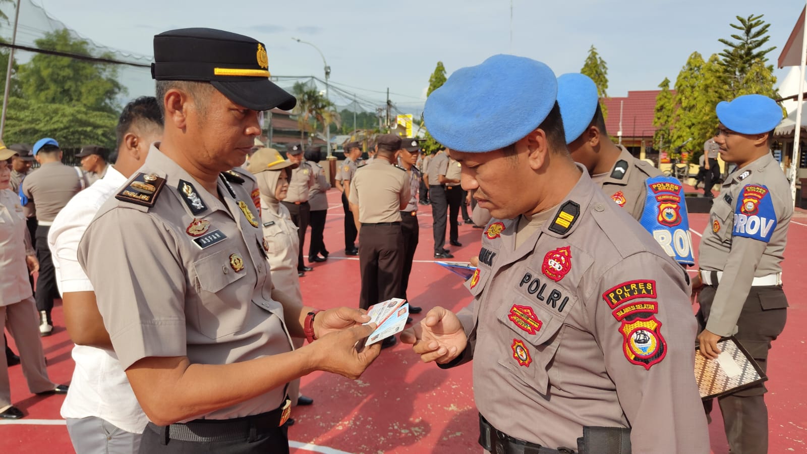 Pemeriksaan administrasi meliputi Kartu Tanda Penduduk (KTP), Surat Izin Mengemudi (SIM), Kartu Tanda Anggota (KTA), serta kelengkapan lainnya yang wajib dimiliki setiap personel Polri.