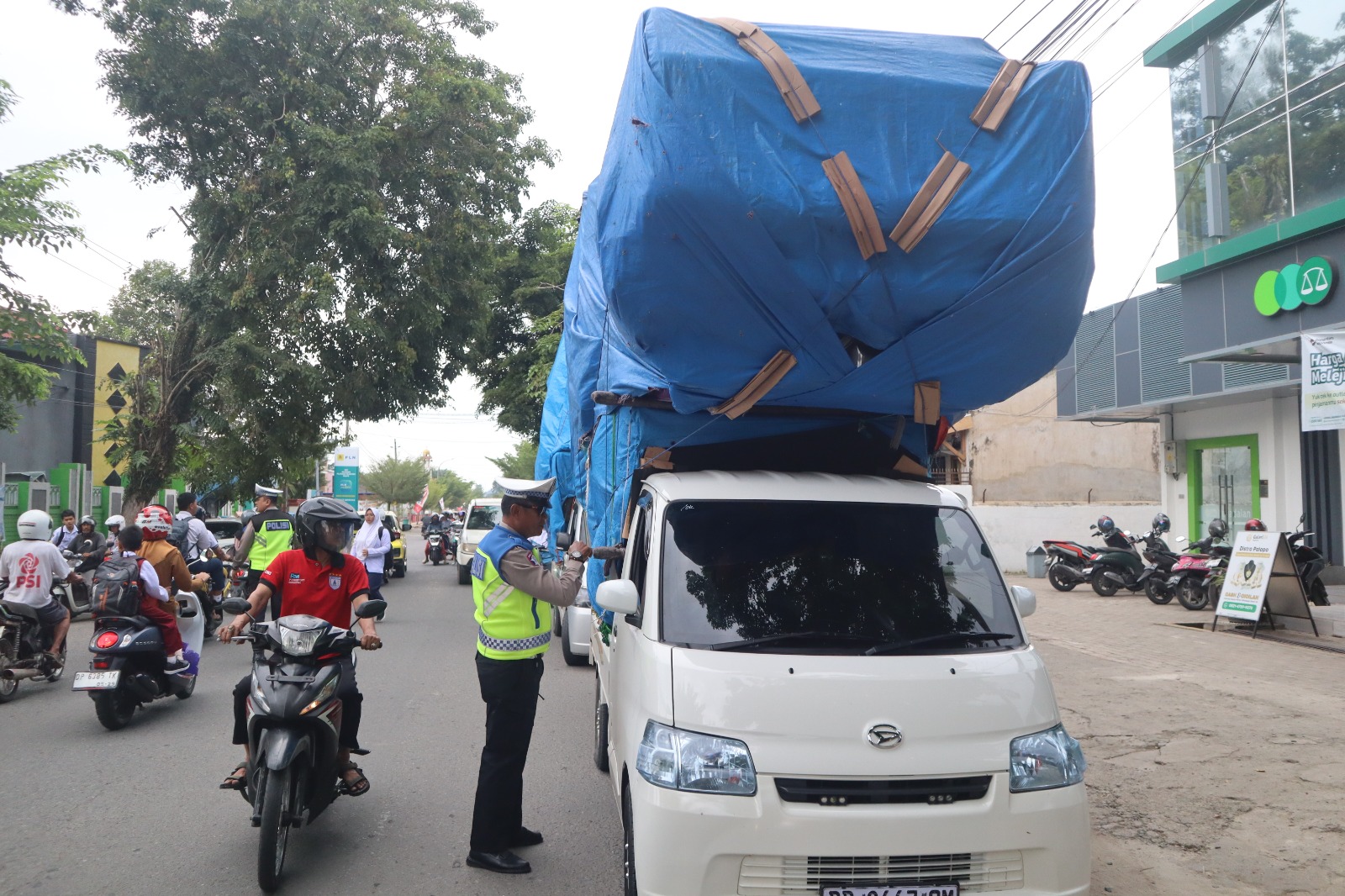 Seperti yang dilakukan di depan Madrasah Tsanawiyah Negeri (MTsN) Palopo, personel Satlantas Polres Palopo memberhentikan satu unit kendaraan roda empat yang kedapatan mengangkut barang melebihi ketentuan (overload) pada Senin, 09 Februari 2026.