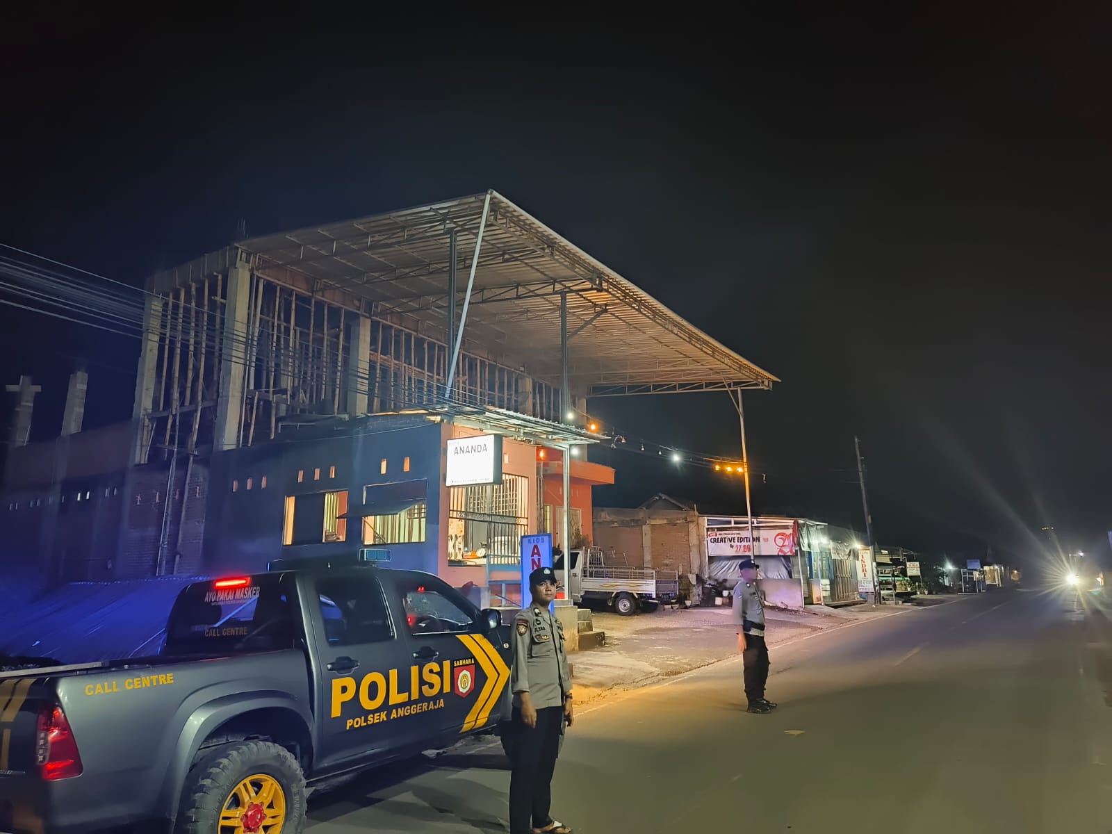 Patroli dilakukan secara mobile di seputaran wilayah hukum Polsek Anggeraja dengan menyalakan lampu rotator biru sebagai bentuk kehadiran polisi di lapangan.