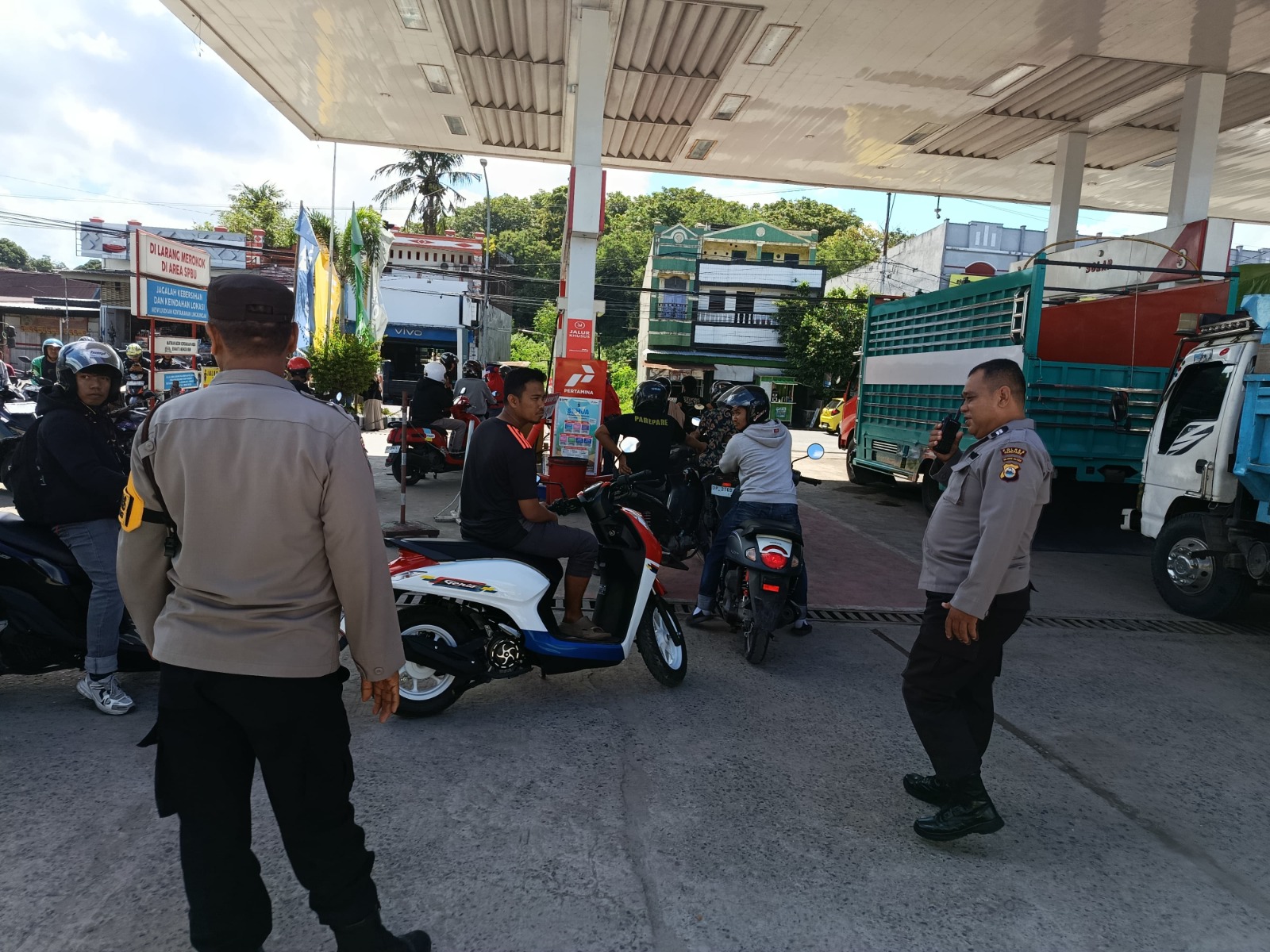 Sekitar pukul 14.35 Wita, personel patroli diterjunkan untuk melakukan pemantauan aktivitas masyarakat di SPBU tersebut. Langkah ini dilakukan sebagai upaya antisipasi terhadap potensi antrean panjang yang dapat memicu gangguan arus lalu lintas maupun situasi kamtibmas.