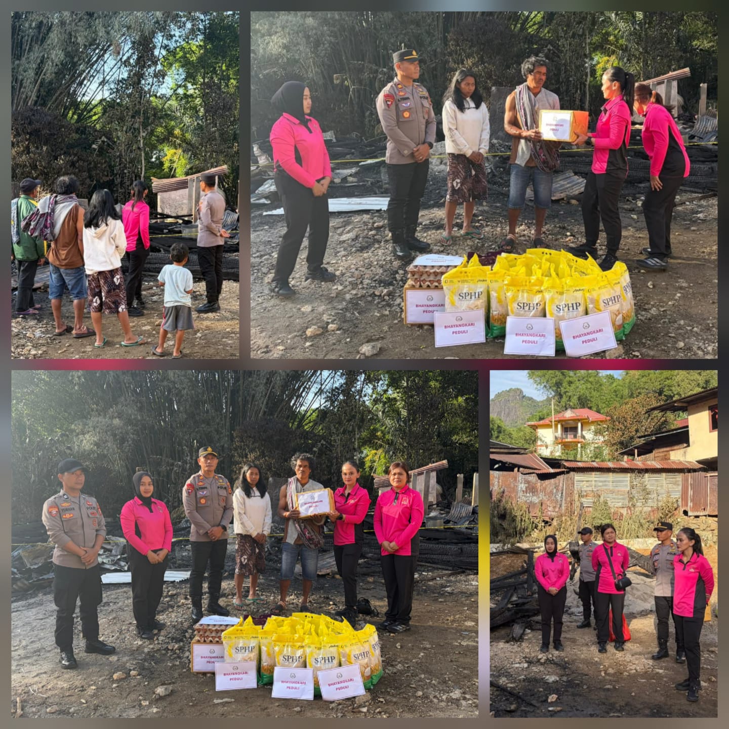 “Kami menyerahkan bantuan kepada korban musibah Kebakaran sebagai wujud kepedulian Bhayangkari, bantuan yang telah Kami serahkan diharapkan dapat sedikit meringankan beban yang dialami Korban,” ungkapnya.
