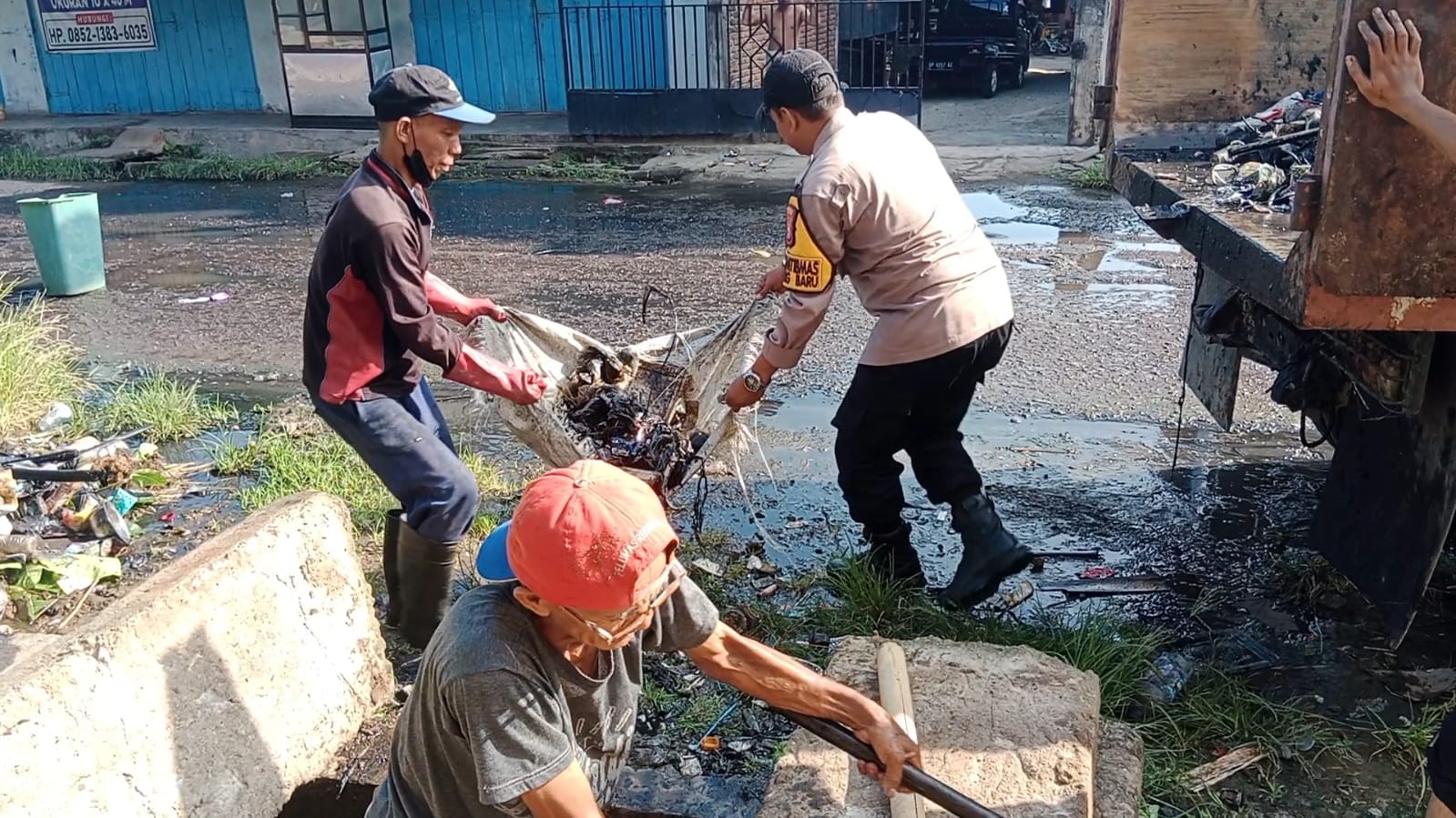 Kerja pembersihan itu difokuskan pada pembersihan selokan yang tersumbat akibat tumpukan sampah. Dengan mengenakan perlengkapan sederhana, Aiptu Darwis bersama petugas kebersihan mengangkat sampah yang menghambat aliran air di sepanjang drainase jalan.