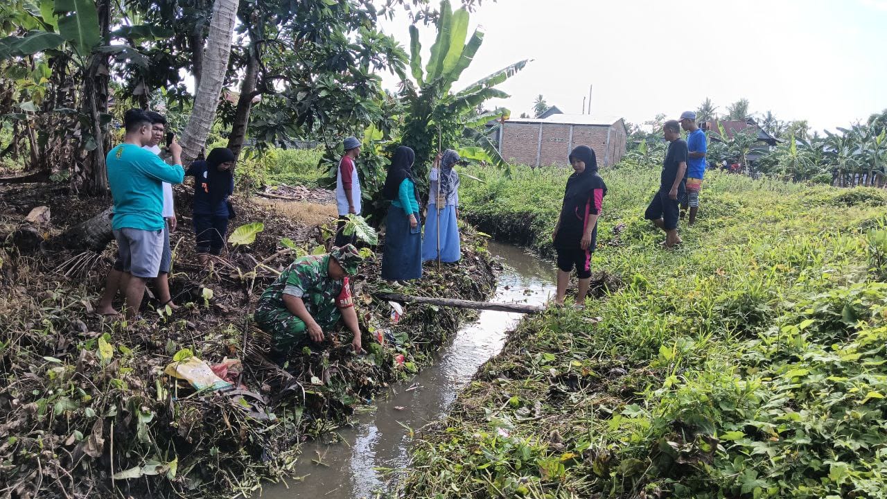 Peduli Lingkungan dan Kesehatan, Anggota Koramil 07 Baranti Gelar Karya Bakti Bersihkan Selokan dan Sampah di Lingkungan Benteng Sidrap