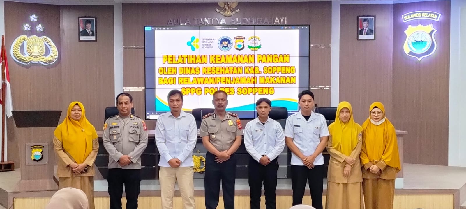 Pelatihan tersebut dibuka oleh Wakapolres, Kompol Sudarmin, S.Sos Soppeng dan dihadiri oleh Kasiwas Polres Soppeng, instruktur dari Dinas Kesehatan Kabupaten Soppeng, Pengawas BGN Kabupaten Soppeng, Kepala SPPG Polres Soppeng, rekanan/mitra SPPG Polres Soppeng, serta para relawan SPPG Polres Soppeng.