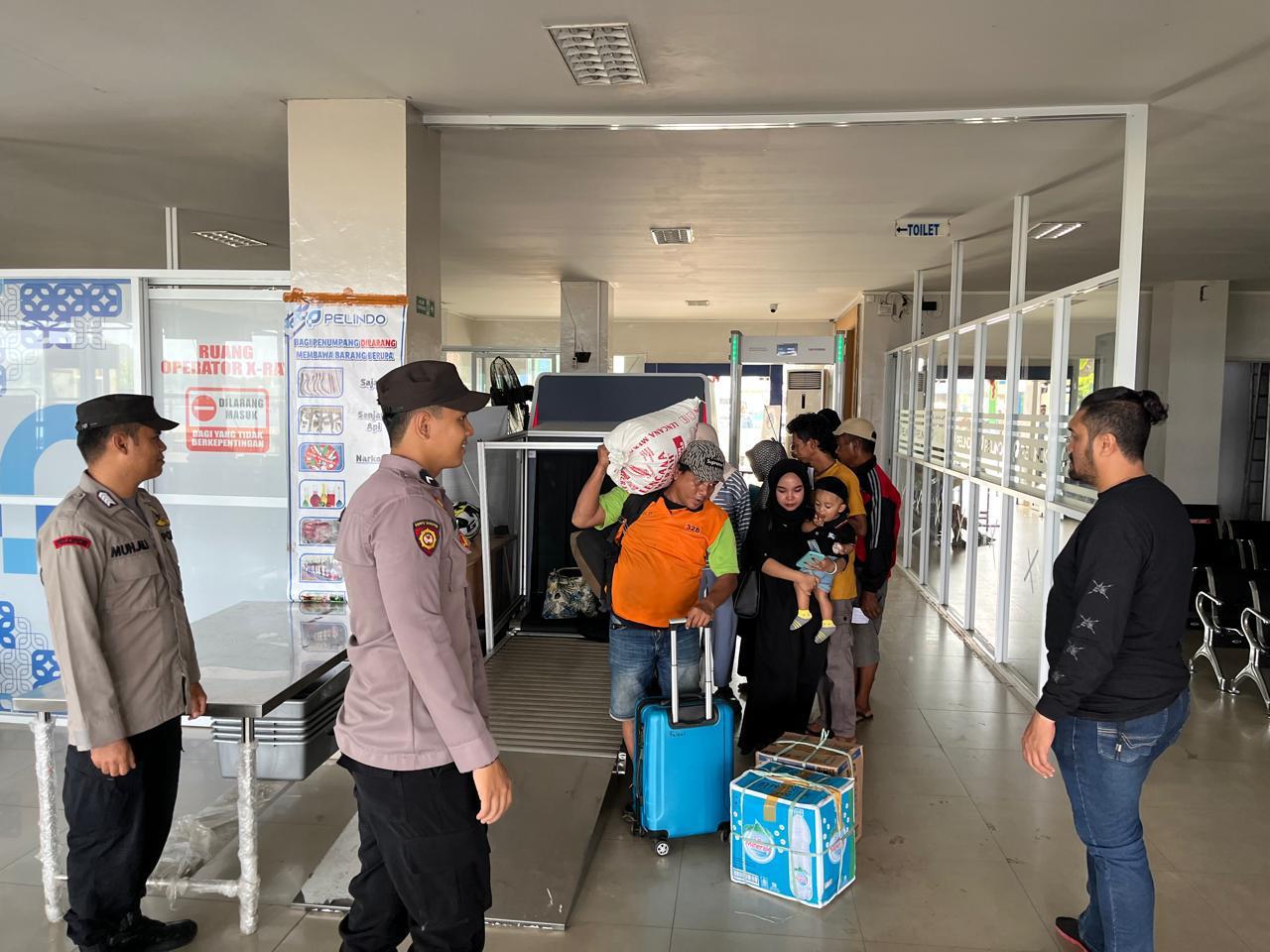 Petugas melakukan pemeriksaan ketat terhadap barang bawaan penumpang guna mencegah masuknya barang ilegal maupun berbahaya melalui jalur laut. Pemeriksaan dilakukan secara menyeluruh di area keberangkatan sebelum penumpang menaiki kapal.
