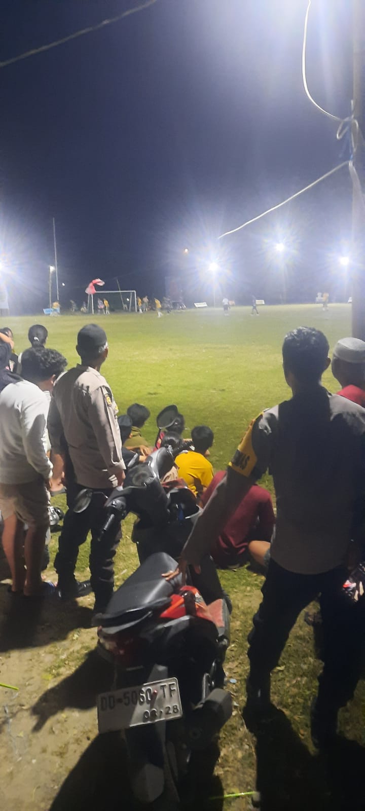 Personel Polsek Lilirilau melaksanakan kegiatan pengamanan jalannya pertandingan turnamen mini fun football. Adapun hasil pertandingan pada malam tersebut yaitu: