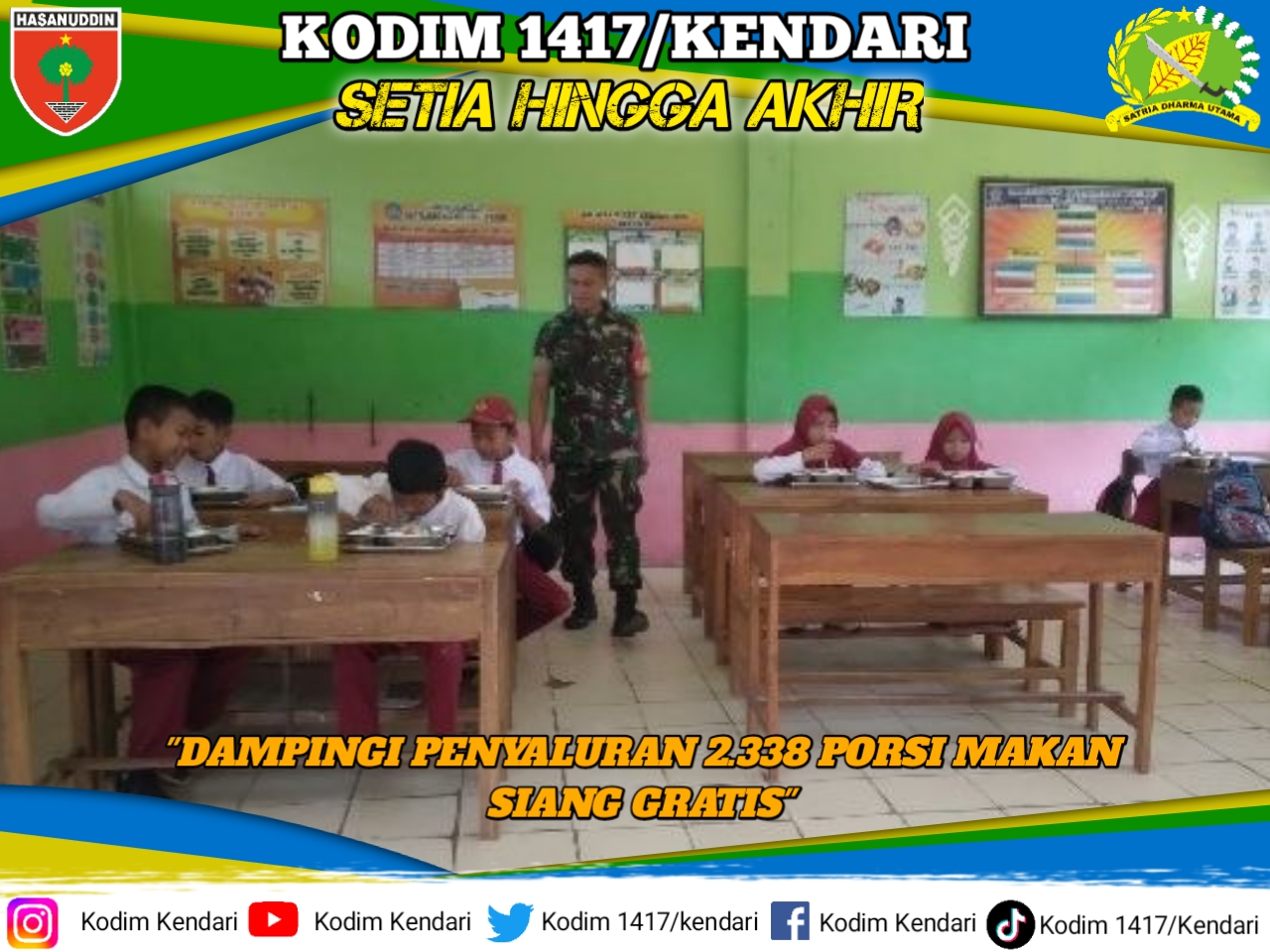 Konsel ,fokustime.id– Dalam upaya mendukung peningkatan kualitas kesehatan siswa di wilayah binaan, Babinsa Koramil 1417-04/Lainea, Sertu Nanang, melaksanakan pendampingan dan pemantauan langsung kegiatan program Makan Bergizi Gratis di sejumlah sekolah di Kecamatan Laeya, Kabupaten Konawe Selatan, Senin (27/4).