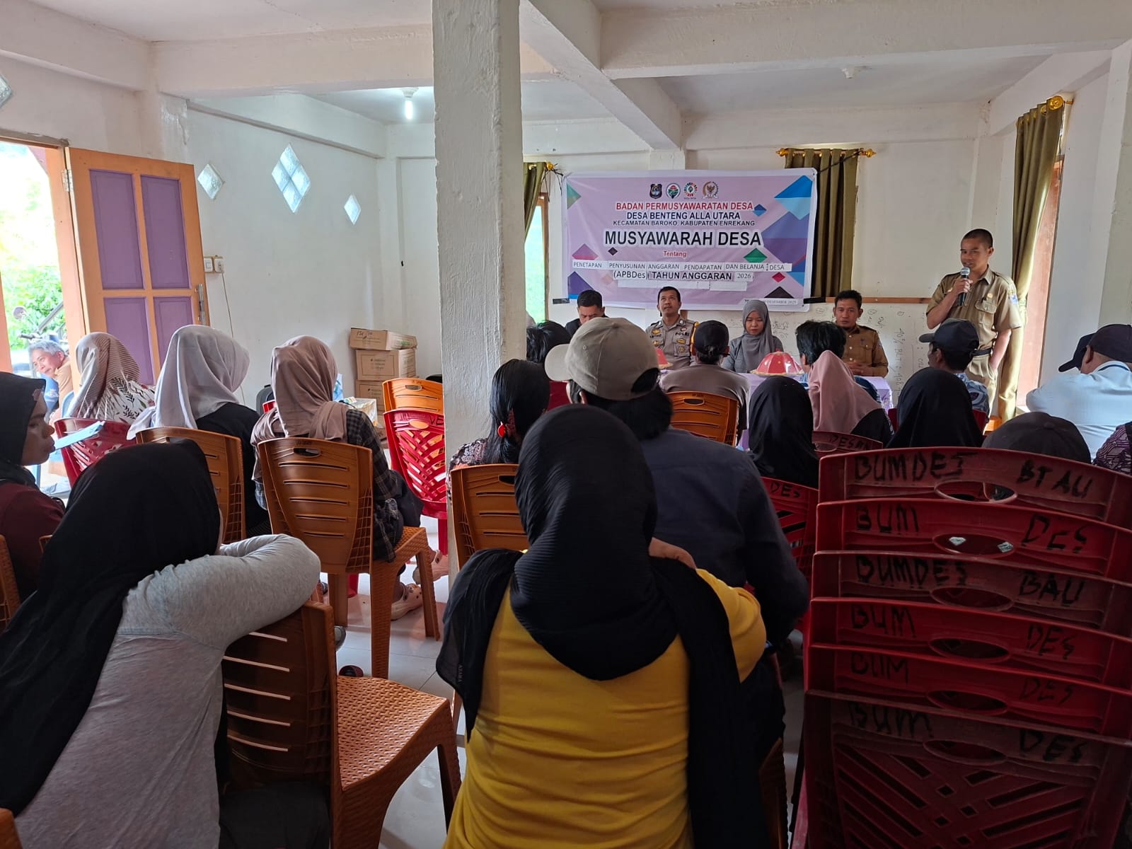 Kegiatan musyawarah desa tersebut dihadiri oleh Kepala Desa Benteng Alla Utara beserta perangkat desa, Ketua dan anggota BPD, tokoh masyarakat, tokoh agama, pendamping desa, serta unsur terkait lainnya. Musdes ini bertujuan untuk membahas dan menetapkan rencana penggunaan anggaran desa tahun 2026 agar tepat sasaran, transparan, dan sesuai dengan kebutuhan masyarakat.