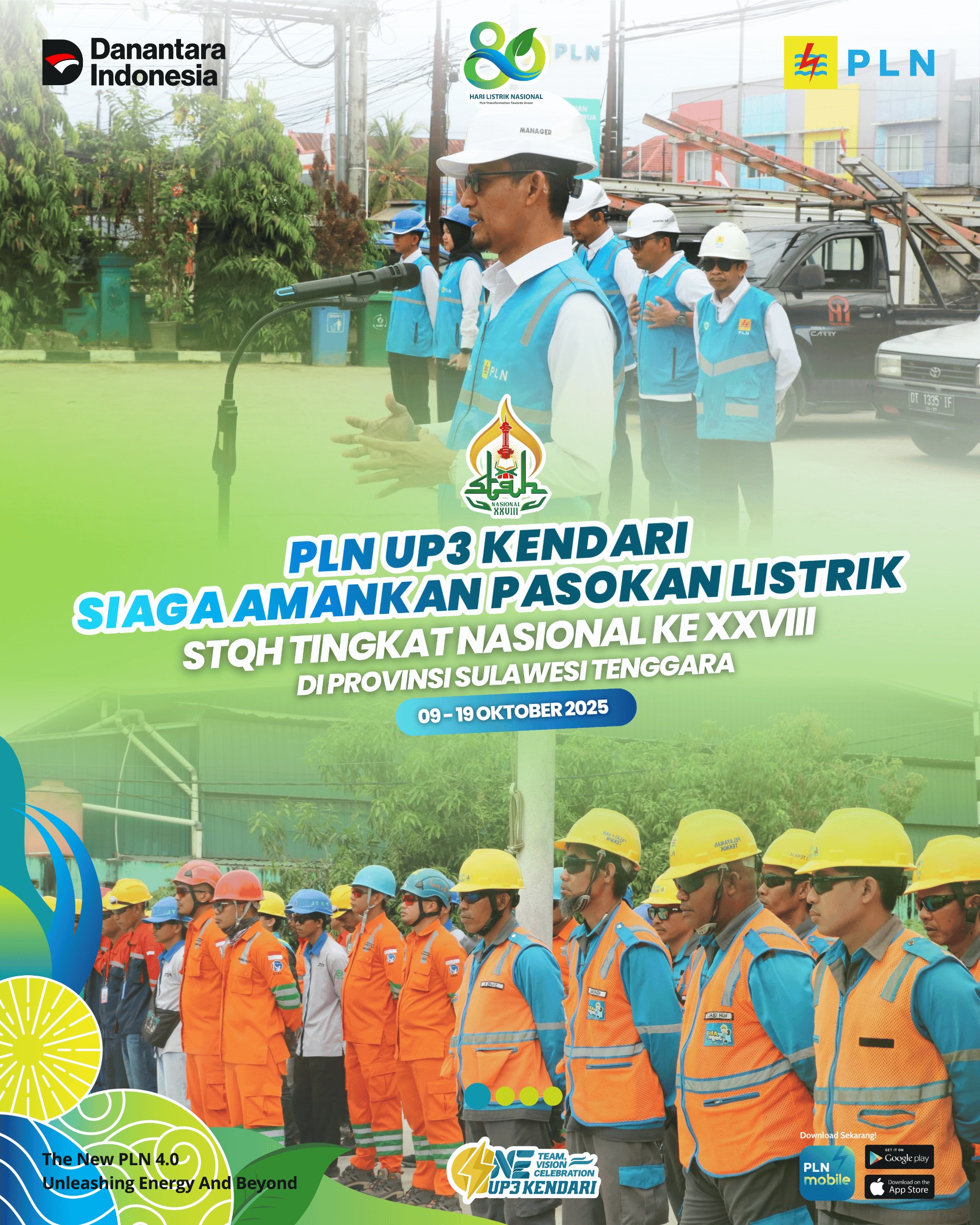 Fokustime.id – Kendari, 06 Oktober 2025 – Dalam rangka mendukung suksesnya pelaksanaan Seleksi Tilawatil Qur’an dan Hadits (STQH) Tingkat Nasional XXVIII Tahun 2025 yang digelar di Provinsi Sulawesi Tenggara, PLN UP3 Kendari menyiapkan strategi pengamanan pasokan listrik secara maksimal.