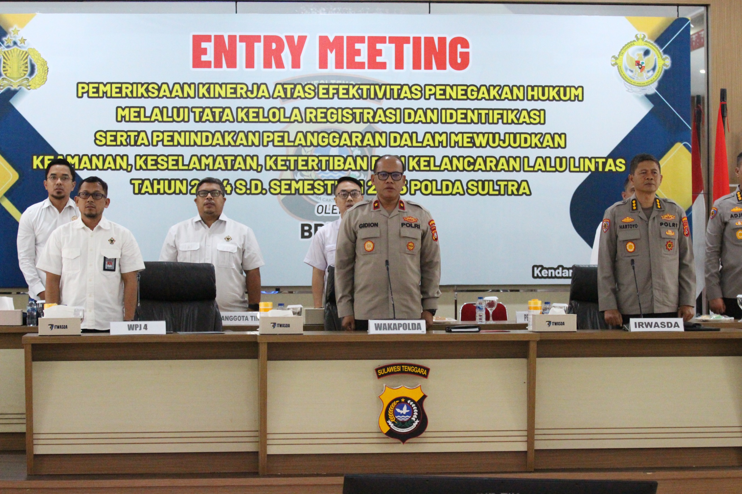 Polda Sulawesi Tenggara (Sultra) melaksanakan entry meeting bersama Badan Pemeriksa Keuangan Republik Indonesia (BPK RI) terkait pemeriksaan kinerja atas efektivitas penegakan hukum melalui tata kelola registrasi dan identifikasi, serta penindakan pelanggaran dalam mewujudkan keamanan, keselamatan, ketertiban, dan kelancaran lalu lintas (Kamseltibcarlantas) tahun 2024 hingga semester I tahun 2025.