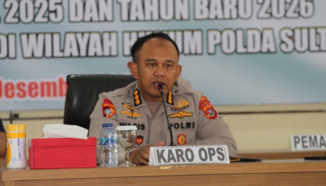 Kendari ,fokustime.id– Kepolisian Daerah Sulawesi Tenggara (Polda Sultra) menggelar kegiatan Latihan Pra Operasi (Latpraops) Lilin Anoa-2025 dalam rangka pengamanan perayaan Natal 2025 dan Tahun Baru 2026. Kegiatan tersebut dilaksanakan pada Kamis, 18 Desember 2025, mulai pukul 09.00 WITA hingga selesai, bertempat di Aula Dhacara Polda Sultra.