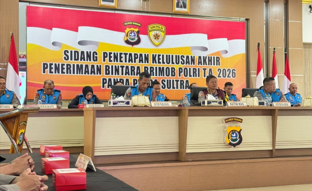 Kendari ,fokustime.id– Kepolisian Daerah Sulawesi Tenggara (Polda Sultra) menetapkan sebanyak 63 calon siswa (casis) dinyatakan lulus terpilih dalam Sidang Penetapan Kelulusan Akhir Penerimaan Bintara Brimob Polri Tahun Anggaran 2026. Penetapan tersebut dilakukan dari total 559 peserta yang mengikuti tahapan seleksi sejak pendaftaran awal.