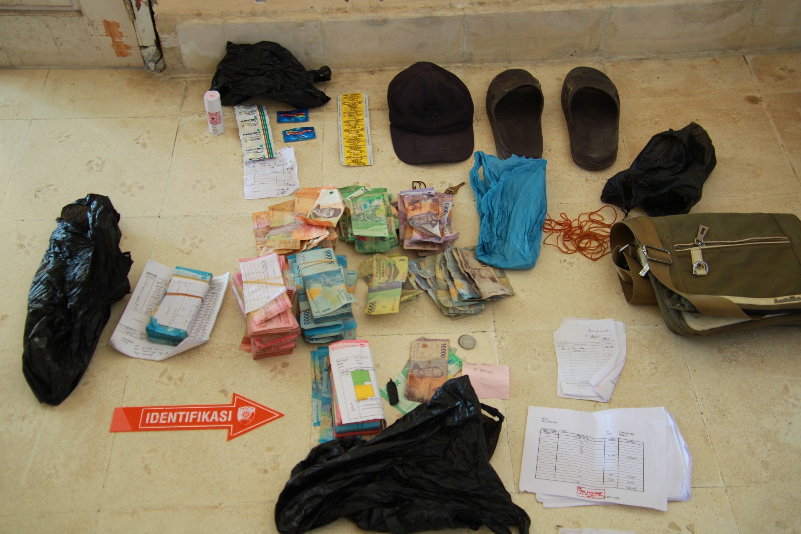 Perwira pangkat tiga balak ini juga mengungkapkan bahwa ditemukan pula tas korban yang berisikan pakaian, sejumlah obat-obatan dan uang tunai Rp101.743.000