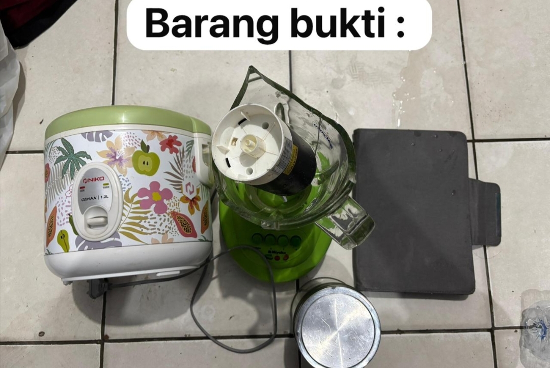 Polisi turut mengamankan sejumlah barang bukti, di antaranya rice cooker, blender, toples, dan case tablet.
