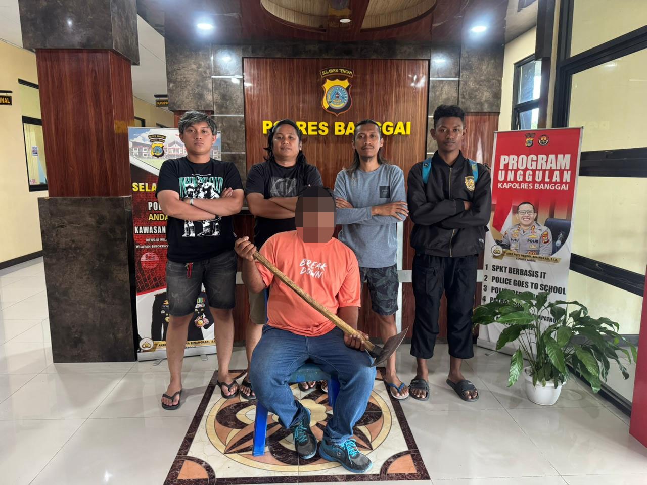 Banggai,fokustime.id – Tim Resmob Tompotika Sartreskrim Polres Banggai mengamankan terduga pelaku tindak pidana penganiayaan dengan menggunakan alat pertanian jenis cangkul.