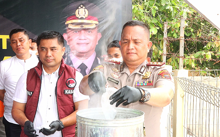 Selanjutnya, pihak kepolisian juga melakukan pemusnahan barang bukti narkotika dari empat kasus berbeda yang telah selesai melalui proses hukum. Total keseluruhan barang bukti shabu dari keempat kasus sebelumnya memiliki berat brutto 1462,94 gram dan netto 1314,97 gram, dengan sebagian besar yaitu 1.210,07 gram secara resmi dimusnahkan.