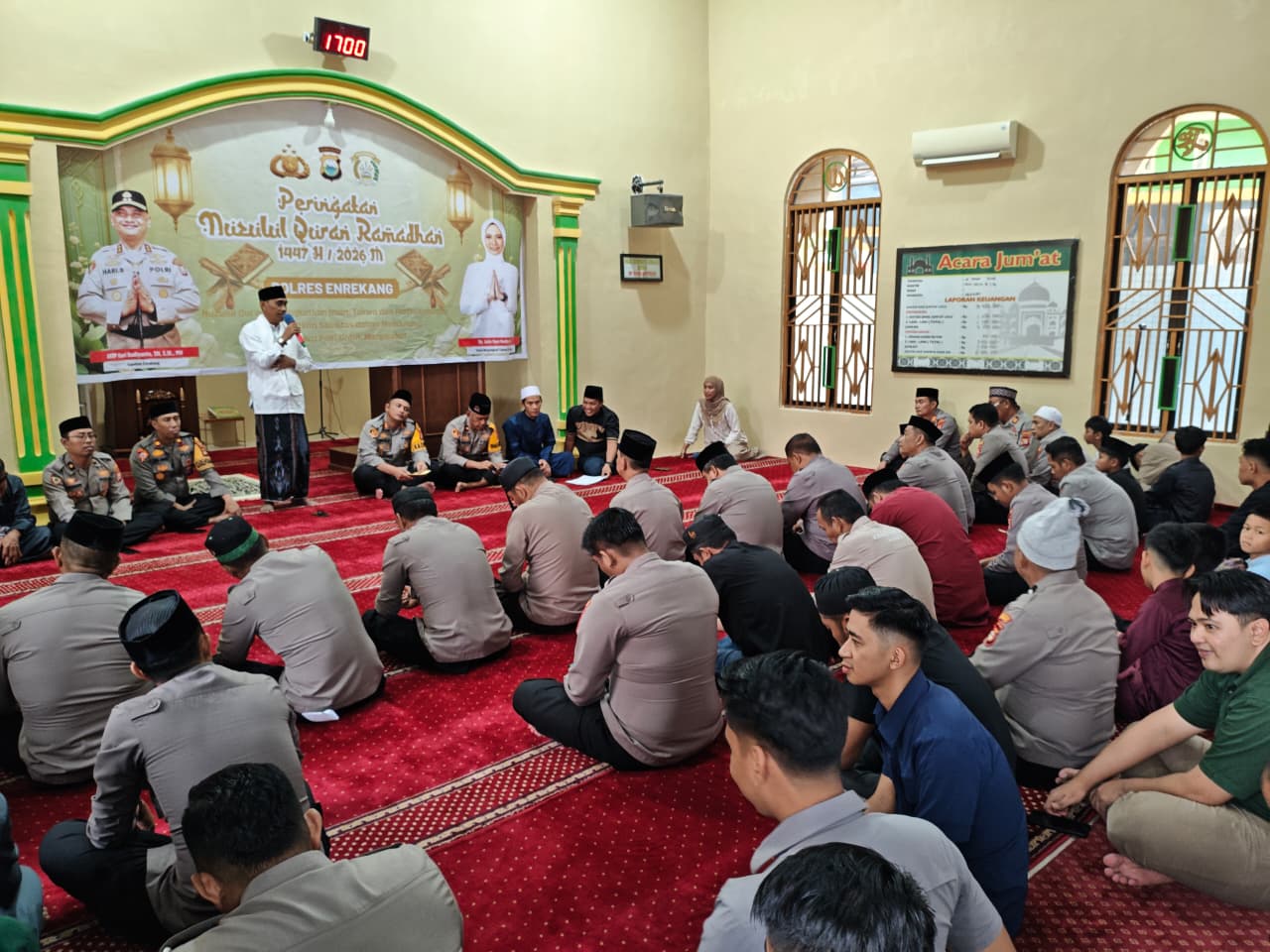Enrekang, fokustime.id- Jajaran Polres Enrekang menggelar kegiatan peringatan Nuzulul Qur’an yang berlangsung khidmat di Masjid Nurul Amanah Mapolres Enrekang, Kamis (12/03/2026).