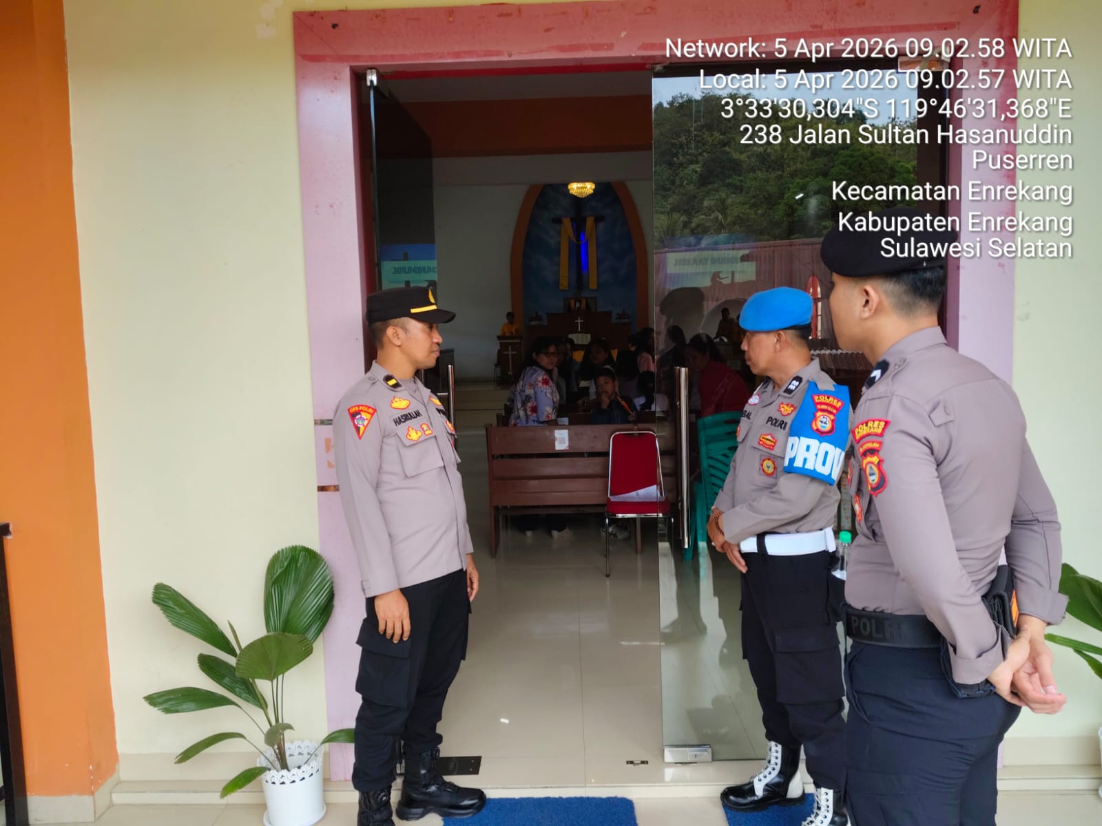 Sihumas polres Enrekang menjelaskan bahwa Kehadiran personel kepolisian di lokasi ibadah bertujuan memastikan seluruh kegiatan berjalan aman, tertib, dan lancar.