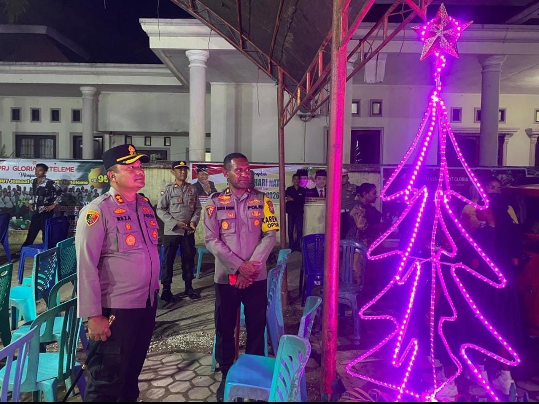 Kapolres Morowali Utara Akbp Reza Khomeini, S.I.K menegaskan bahwa Polri akan selalu hadir dalam setiap kegiatan masyarakat, memberikan pelayanan terbaik serta memastikan setiap kegiatan tersebut berjalan dengan aman, tertib dan lancar, terlebih khusus yang kita laksanakan pada malam ini yakni pelaksanan pengamanan rangkaian ibadah malam Natal.” Ungkap Kapolres. Saat melaksnakan pengecekan pengamanan Gereja di wilayah Kecamatan Lembo dan sekitaran. Rabu. (24/12/2025).