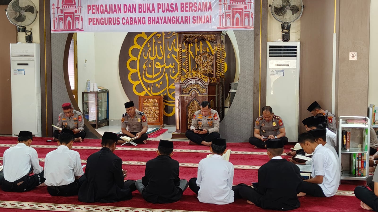 Kegiatan pengajian berlangsung dengan suasana khidmat dan penuh kekeluargaan. Para peserta yang hadir tampak mengikuti rangkaian kegiatan dengan penuh antusias, menjadikan momen tersebut sebagai sarana memperkuat nilai spiritual sekaligus mempererat silaturahmi antara jajaran kepolisian, Bhayangkari, dan masyarakat.