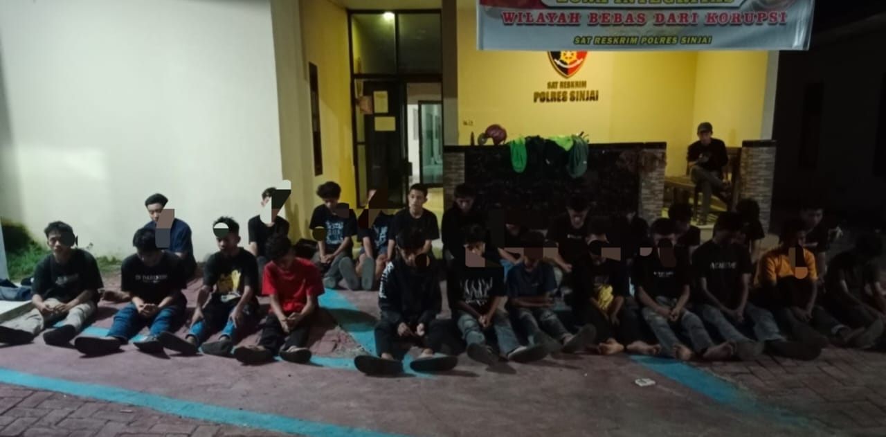 Polisi menyita barang bukti berupa dua ketapel busur, tiga anak busur, tiga bilah badik, 23 unit handphone android, 12 unit sepeda motor, delapan kunci motor, tiga jam tangan, serta sejumlah tali pinggang. Sebanyak 24 pemuda berada di lokasi yang sama dan semuanya diamankan untuk pemeriksaan lebih lanjut. Berdasarkan keterangan polisi, para remaja tersebut tergabung dalam kelompok seperti BBT Area, Poros Selatan, dan Gank Sinjai Tengah.