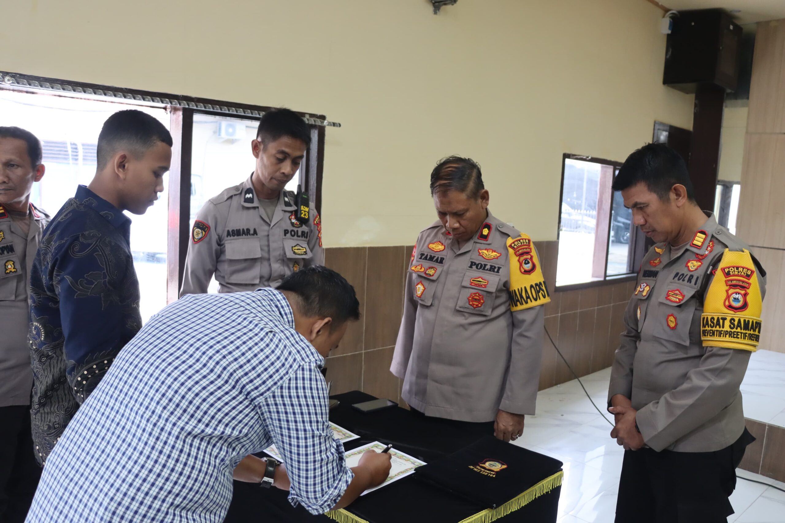 Kapolres Sinjai Akbp Harry Azhar, SH.,S.Ik., MH melalui Wakapolres Sinjai Kompol Tamar, S.Sos mengatakan bahwa tahapan pelaksanaan untuk seleksi penerimaan Bintara Brimob Polri TA.2026 diwilayah hukum Polda Sulsel telah dimulai, langkah awal yakni dengan dilaksanakannya Penandatanganan Pakta Integritas dan Pengambilan Sumpah dilakukan oleh Panitia, Peserta dan Orang tua (Wali).