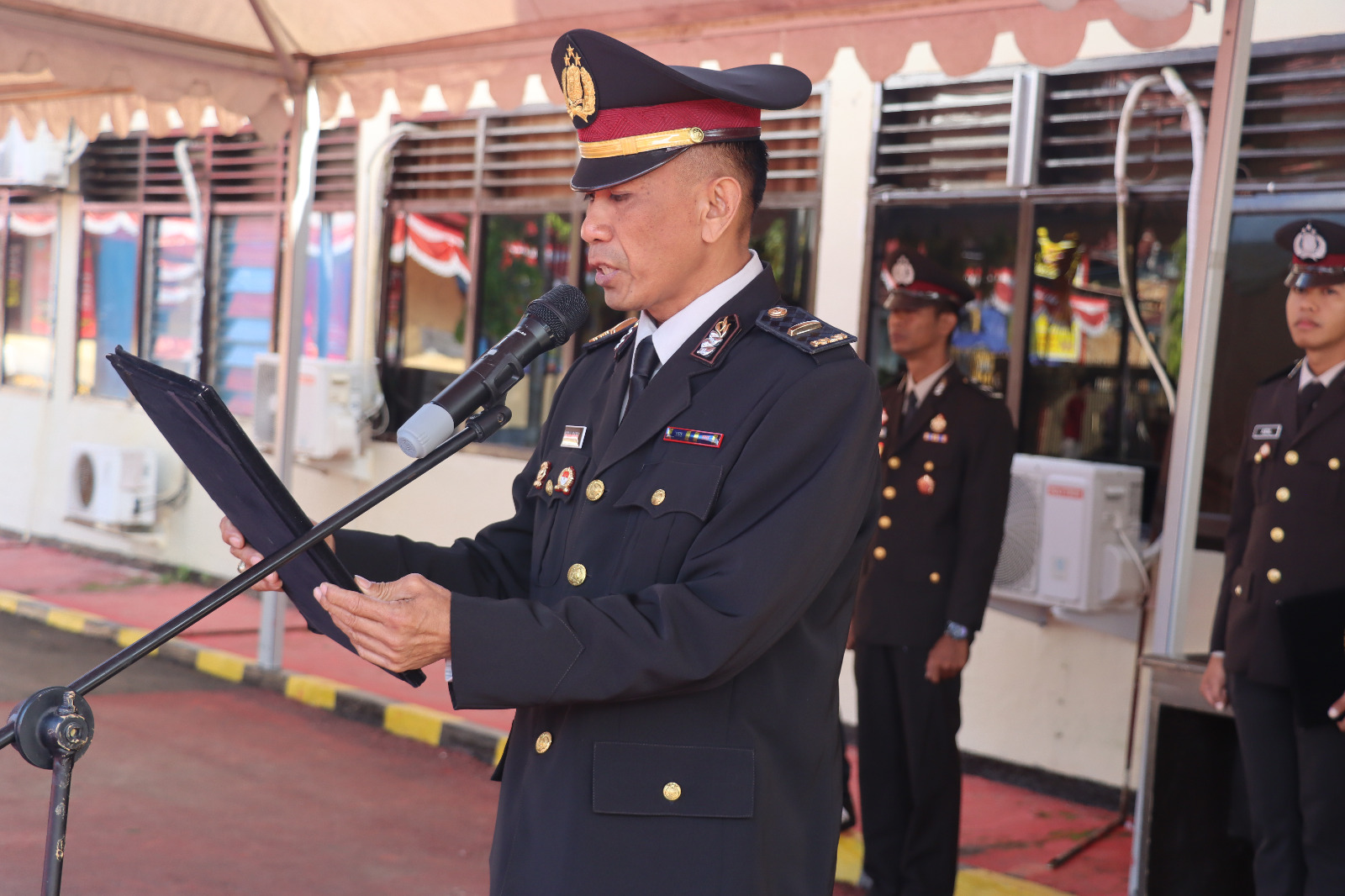 Peserta upacara terdiri dari kelompok perwira, satu regu Sat Polairud, satu peleton gabungan staf Polres, peleton satuan Lalu lintas, satu peleton gabungan satuan Reskrim, Intelkam, Narkoba.