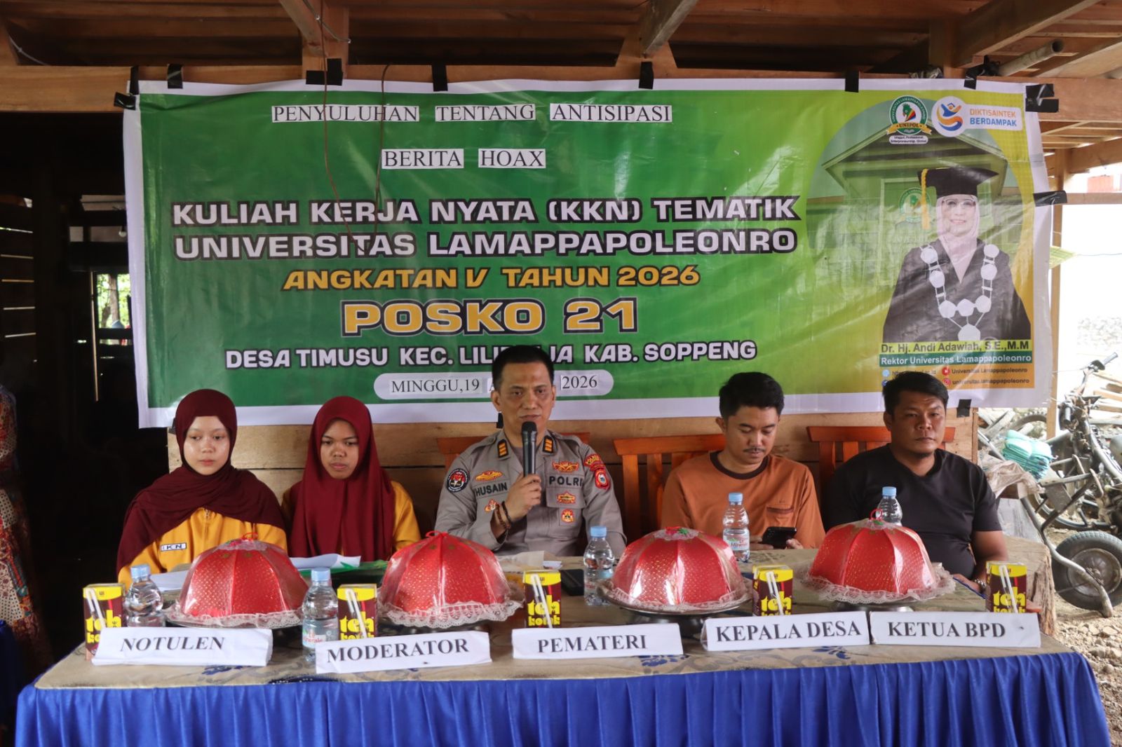 Kegiatan ini merupakan kolaborasi antara Polres Soppeng dan mahasiswa KKN Tematik Universitas Lamappapoleonro Posko XXI Desa Timusu, dengan menghadirkan masyarakat setempat sebagai peserta penyuluhan.