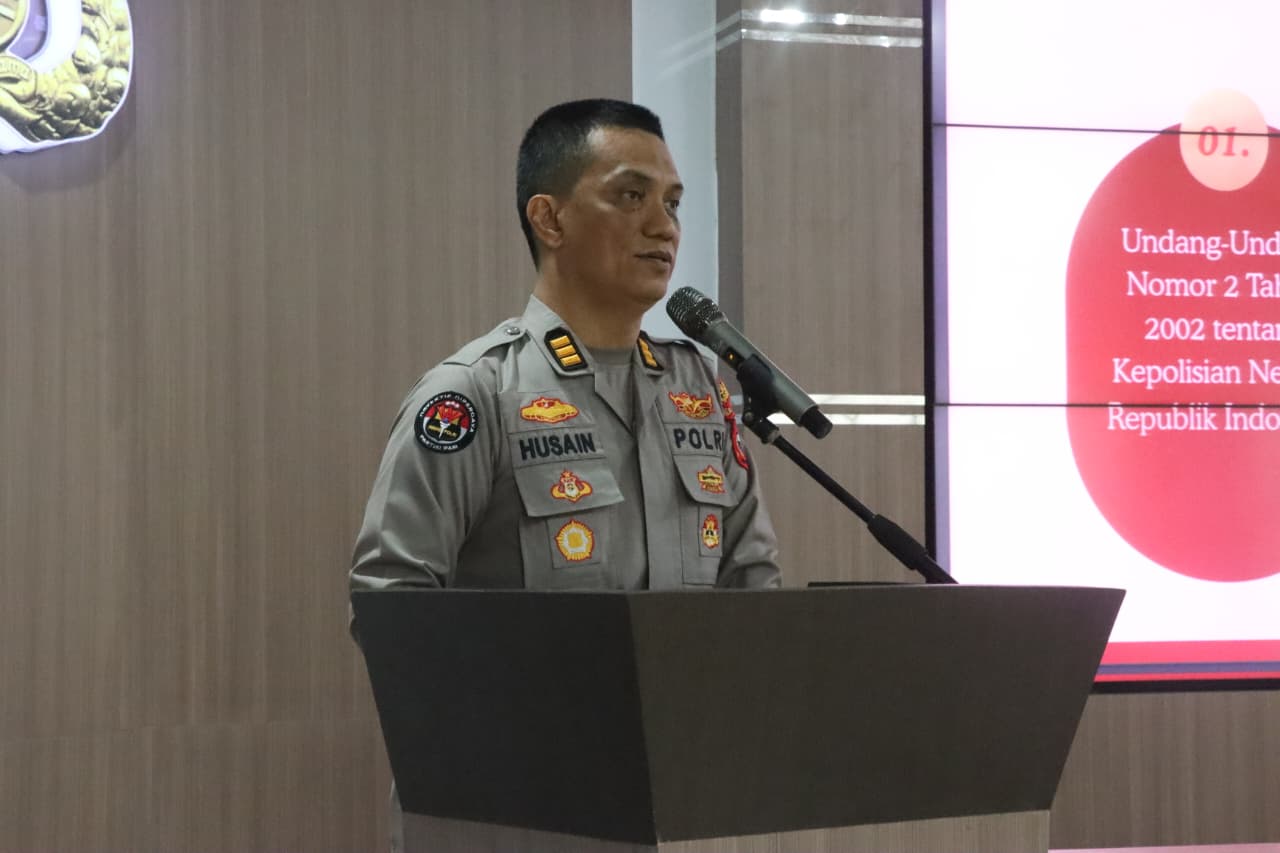 Materi yang diberikan meliputi pola pengamanan, kesiapsiagaan personel, pengaturan lalu lintas, penegakan hukum, intelijen keamanan, kehumasan, serta penekanan pada disiplin dan profesionalisme anggota selama pelaksanaan operasi.