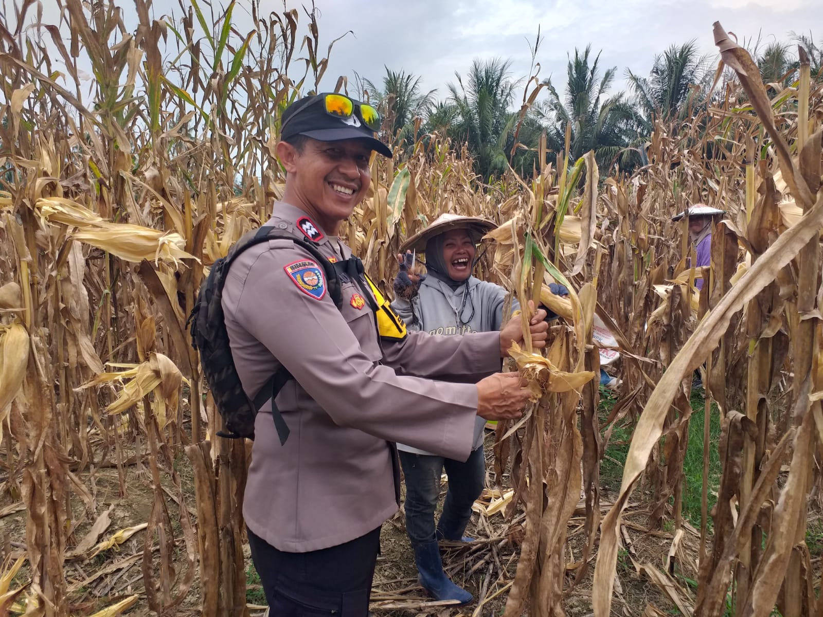 Polri Hadir di Tengah Petani, Bhabinkamtibmas Desa Luku Dampingi Panen Jagung Dukung Ketahanan Pangan Nasional