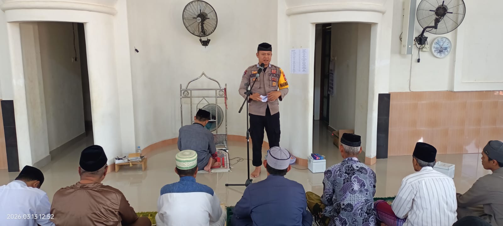 Setelah pelaksanaan sholat Jum’at, Bripka Hardianto Usman itu menyempatkan diri untuk menyampaikan himbauan dari Kapolres Enrekang dalam rangka menjaga situasi Harkamtibmas (Pemeliharaan Keamanan dan Ketertiban Masyarakat) serta Kamseltibcarlantas (Keamanan, Keselamatan, Ketertiban dan Kelancaran Lalu Lintas) selama Bulan Suci Ramadhan.