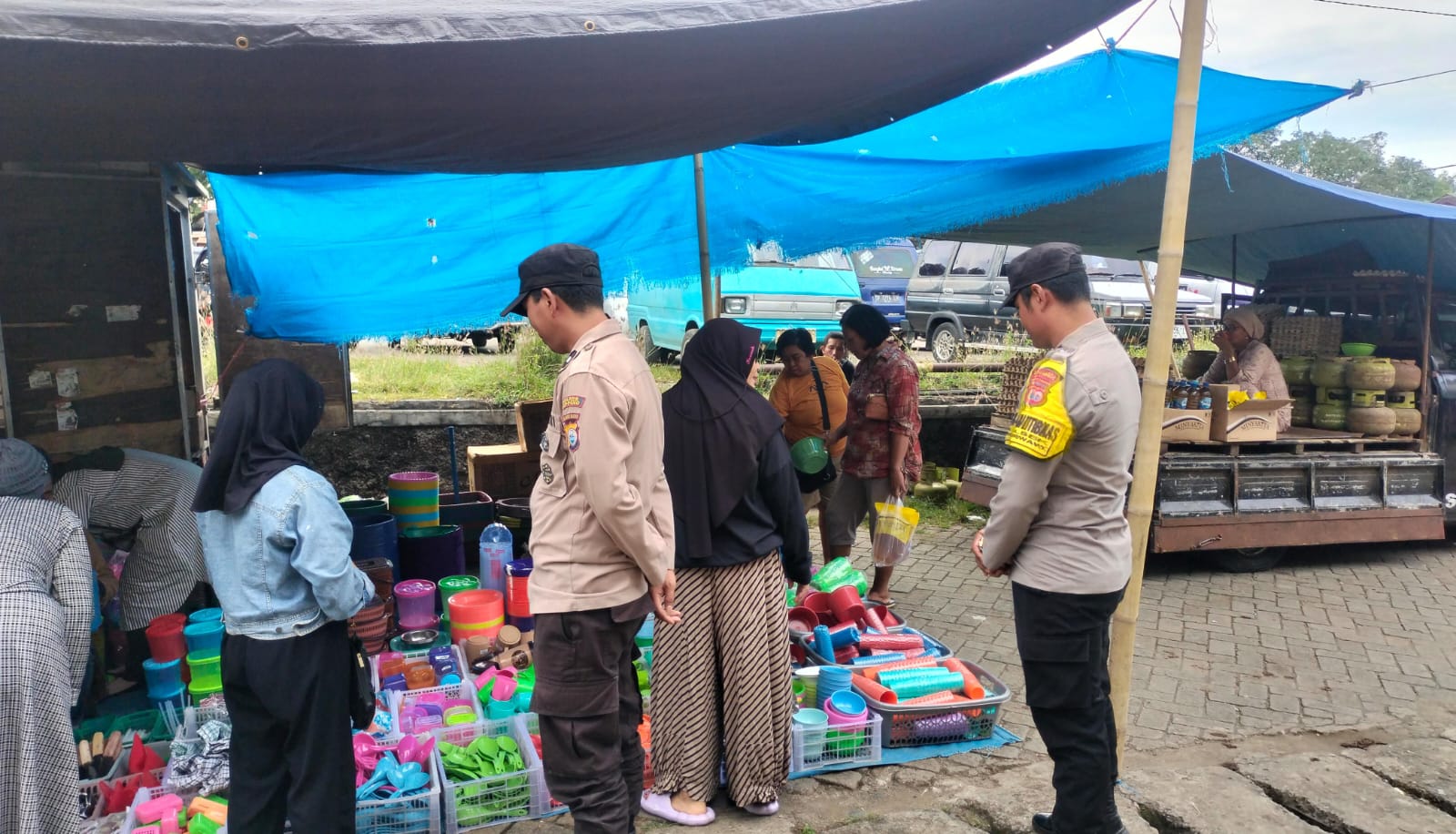 Kegiatan tersebut difokuskan pada pengaturan arus pengunjung, patroli dialogis, serta pemberian himbauan kamtibmas kepada para pedagang dan pengunjung pasar guna menciptakan situasi yang aman dan kondusif.