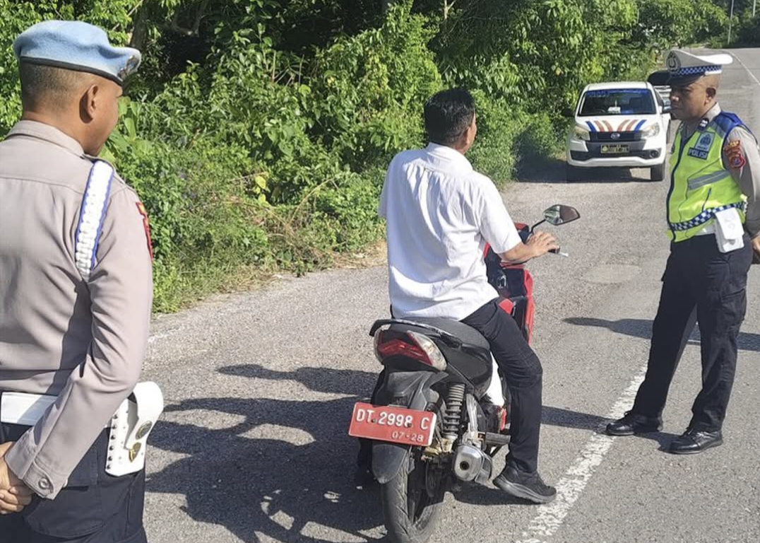 Buton,fokustime.id – Satuan Lalu Lintas (Sat Lantas) Polres Buton memberikan teguran kepada sejumlah pengendara sepeda motor yang kedapatan tidak menggunakan helm saat berkendara, Selasa 03/02/26