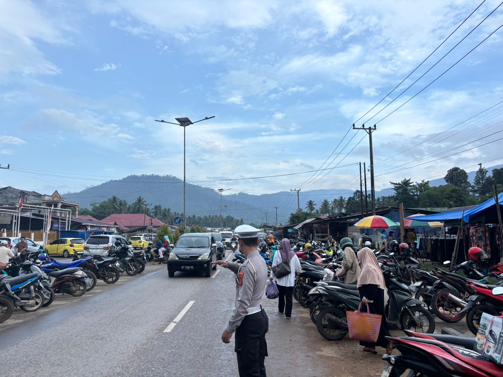 Kegiatan yang dimulai sekitar pukul 15.30 WITA tersebut dipusatkan di depan Pasar Lambudoni, salah satu titik rawan kepadatan arus lalu lintas akibat tingginya aktivitas masyarakat pada sore hari.