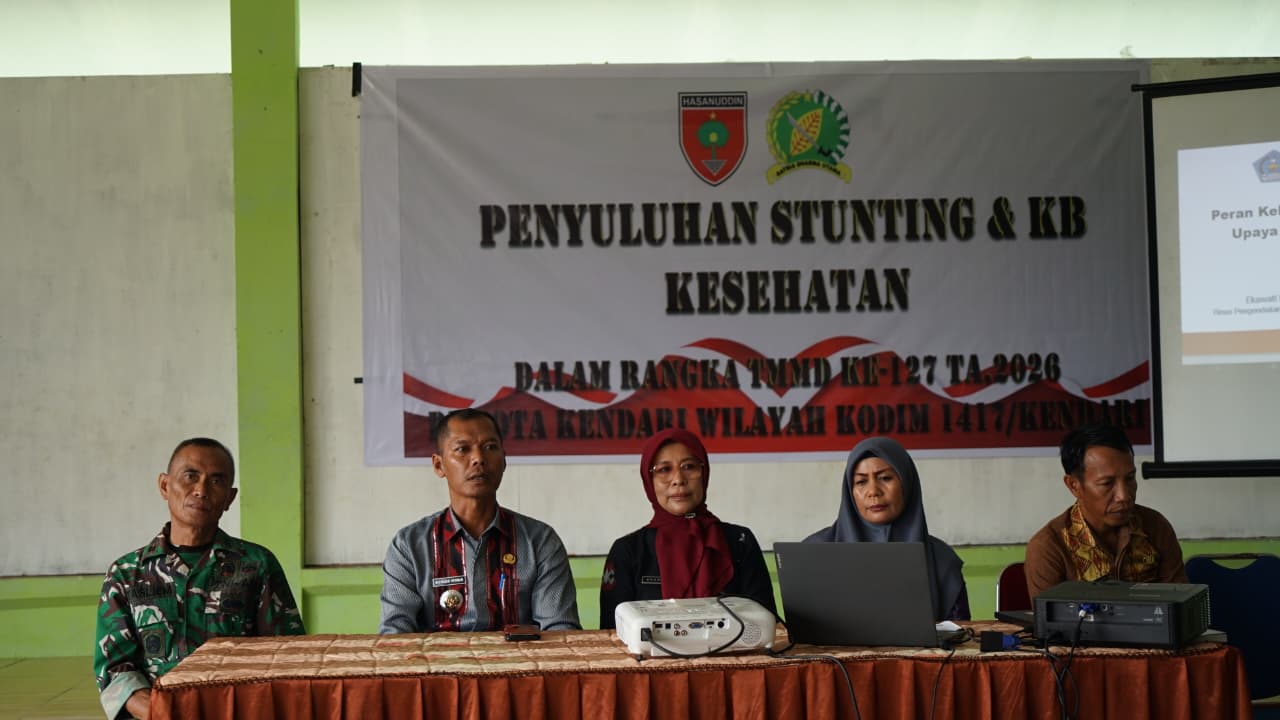 Kendari, fokustime.id– Satuan Tugas Tentara Manunggal Membangun Desa (TMMD) ke-127 Kodim 1417/Kendari bersinergi dengan BKKBN Kota Kendari menggelar kegiatan penyuluhan Stunting dan Keluarga Berencana (KB) Kesehatan di Kelurahan Nambo, Kecamatan Nambo, Kota Kendari, Jumat (13/2).
