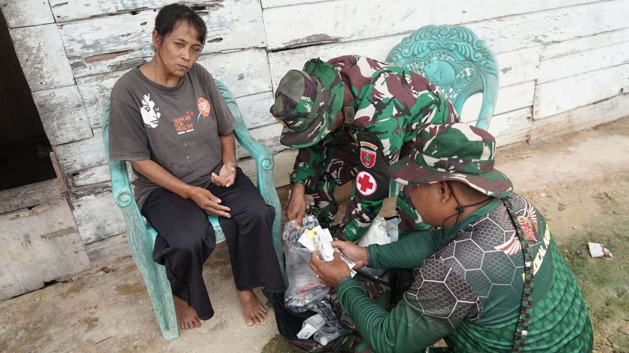 Kegiatan ini tidak hanya berfokus pada pemeriksaan fisik dan pemberian obat-obatan gratis, tetapi juga menjadi sarana mempererat kemanunggalan TNI dengan rakyat.