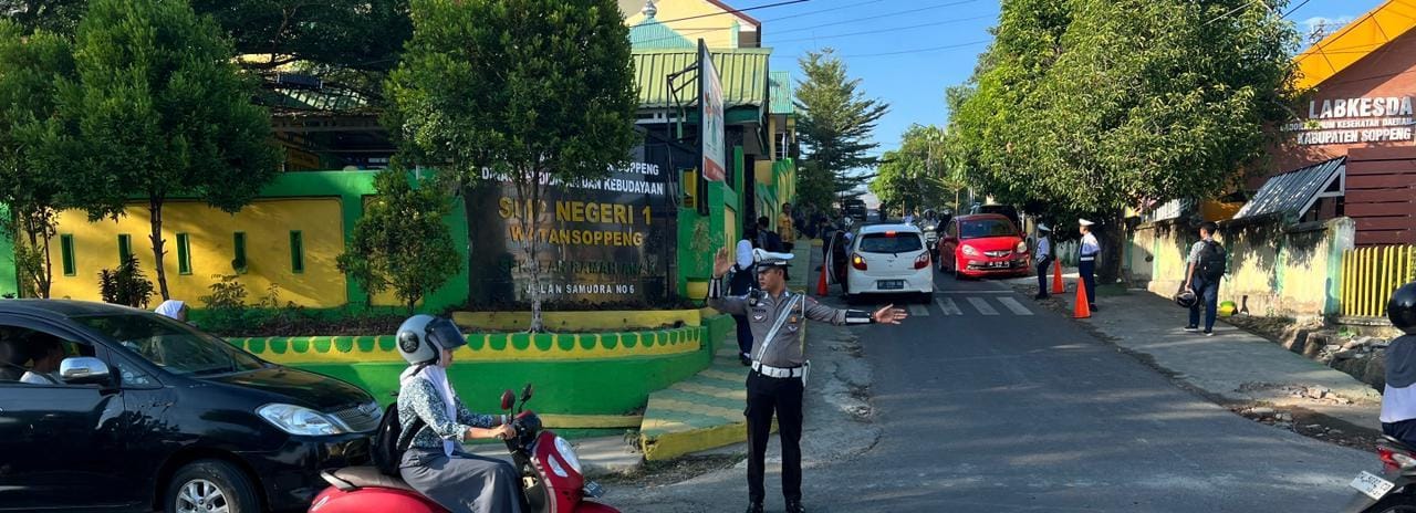 Kegiatan ini dipimpin langsung oleh Kasat Lantas Polres Soppeng IPTU H. Alwi, S.Pd., M.Si, bersama personel Satlantas dengan fokus pengaturan arus lalu lintas serta memberikan pelayanan kepada masyarakat pengguna jalan.