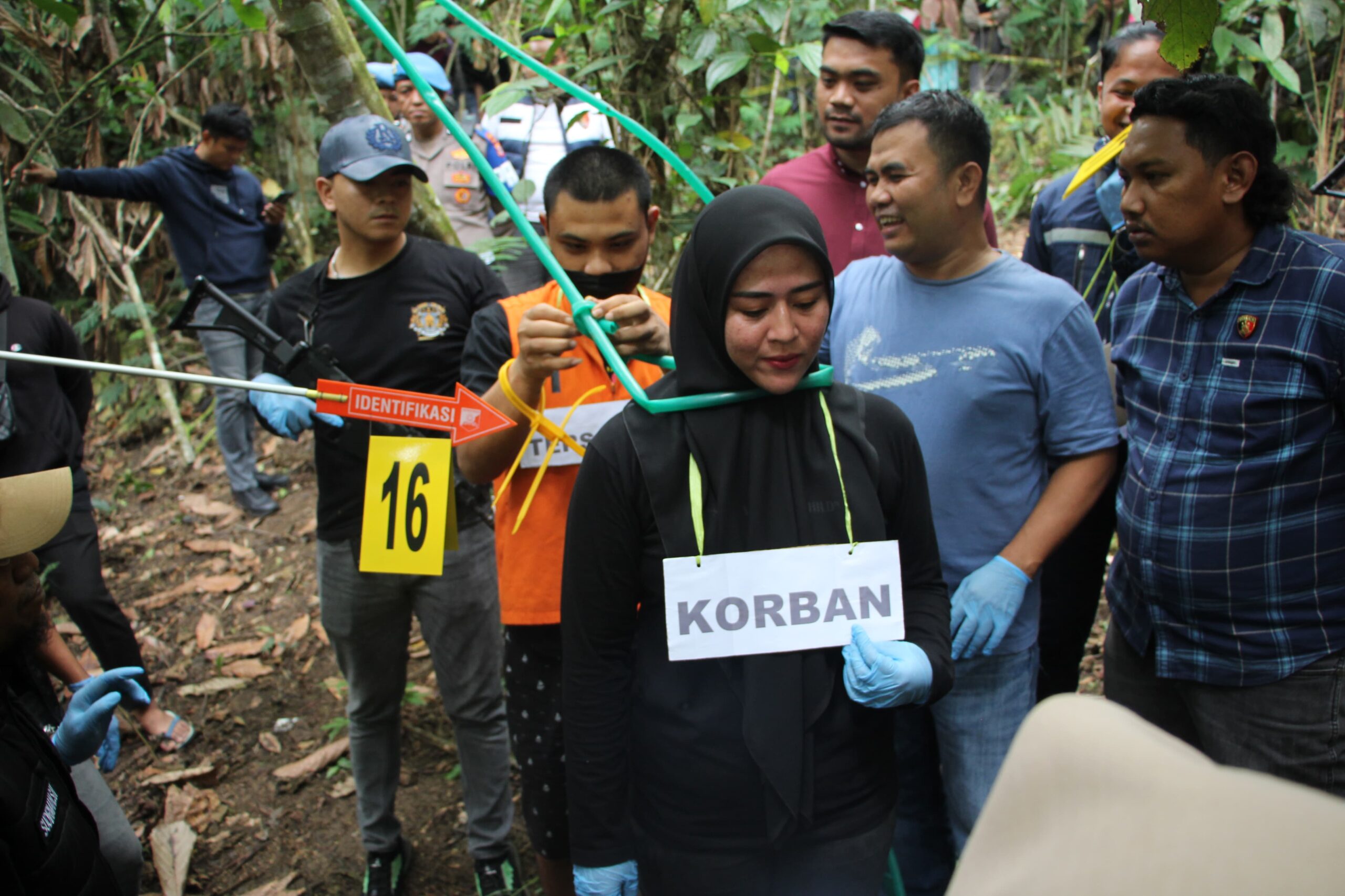 Kegiatan ini dilakukan langsung di Tempat Kejadian Perkara, yaitu di area kebun salak di lereng perbukitan Dusun Lintik, di mana sebelumnya korban SY ditemukan meninggal dunia dalam posisi tergantung.