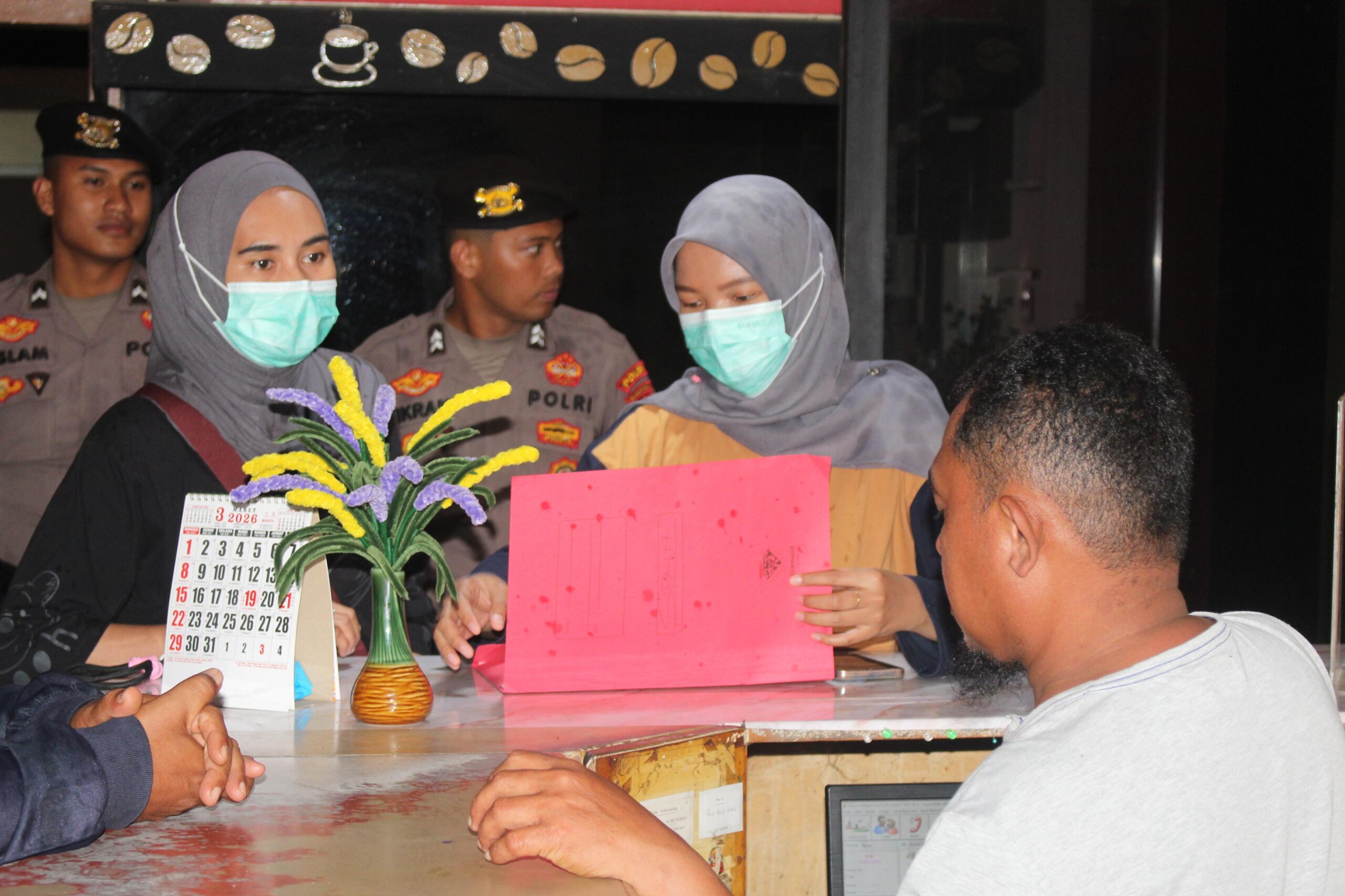 Dalam pelaksanaan razia, petugas melakukan pemeriksaan identitas terhadap para tamu yang berada di lokasi.