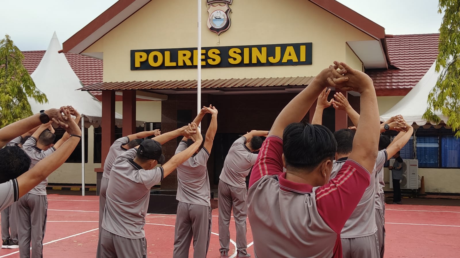 Apel pagi dipimpin oleh Kabag Ren Polres Sinjai Kompol Abd. Majid, S.Sos, kemudian dilanjutkan dengan olahraga senam yang diikuti oleh seluruh personel Polres Sinjai, mulai dari perwira, bintara hingga ASN.