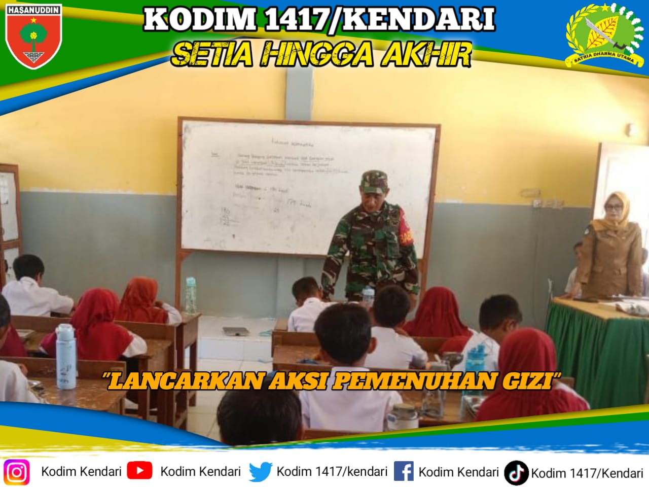 Serda Kamarudin, salah satu personel Koramil 1417-11/Poasia, melaksanakan pemantauan langsung pelaksanaan program makan bergizi gratis. Kegiatan ini berlokasi di Kelurahan Poasia, Kecamatan Abeli, Kota Kendari, dan berjalan dengan lancar serta tertib.